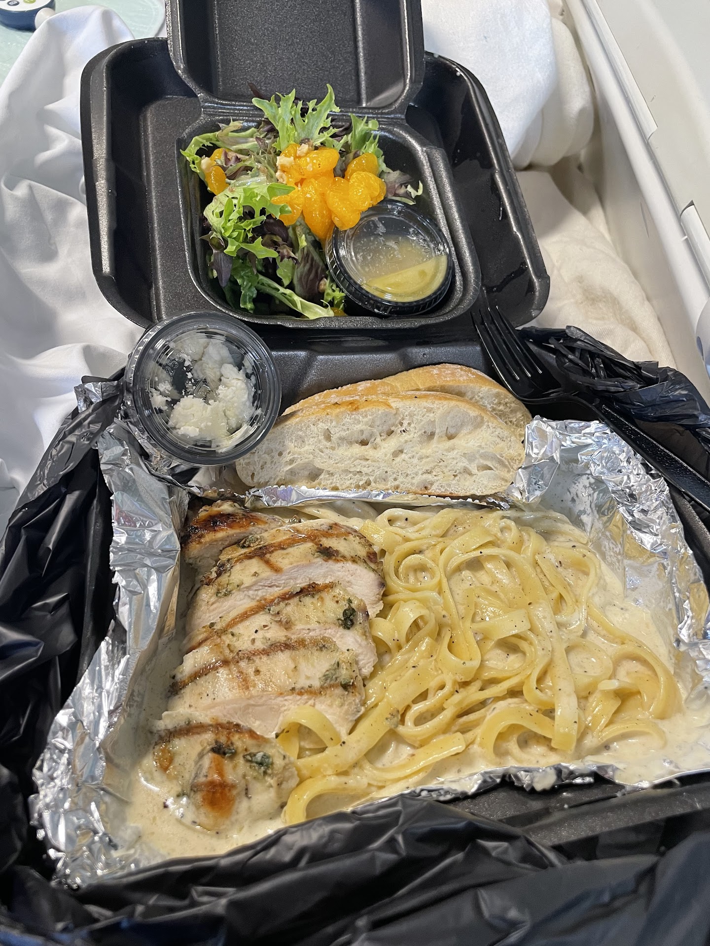 The most notable part of our experience was Mitch's service. He was helpful from the first moment he approached our table, clearly knowledgeable about the menu and ready to make recommendations for our differing diets. He struck the perfect balance of checking on us but not hovering. But he really shone after my friend said that she wasn't feeling well and asked to have her entree boxed instead of dining in. When Mitch returned with her food, he also presented her with a beverage--a digestivo of some sort--which he explained was a sort of Italian cure-all. He hoped it would help her feel better.