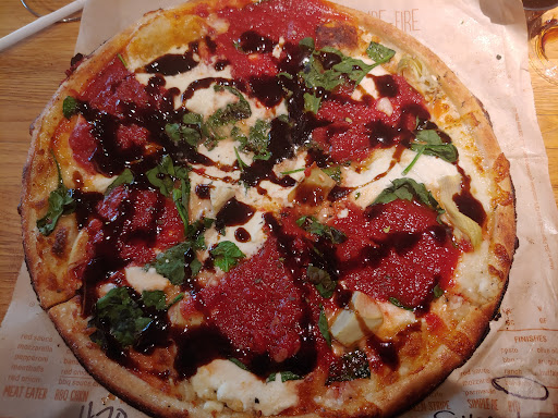 Read moreBLAZE!! This is one of the better pizza joints in Tallahassee - and while it is a chain (we discovered at Disney Springs) - it has a vibe that doesn't make it feel that way. Staff are great!! We went for the PI day pizza $3.14 for an 11" with any toppings you want. So I went a little overboard with artichokes, olives, pineapple, balsamic and fresh mozzarella and it was good. Opted for a salad before and their veggies are always fresh. I ate the salad and only one and half slices and they brought me a box to take the rest home. Even with the one per person pizza special they were having yesterday it wasn't bad - about a 40 minute wait (line went through the restaurant out the door and around the side). They were well staffed for this special as they usually are. Staff was all very friendly and accommodating - no bad attitudes. They even had someone at the door telling people to sign up for their app while they were in line so they could get free dessert. Very smart promotional opportunity! LOVE ME SOME BLAZE!!! ...