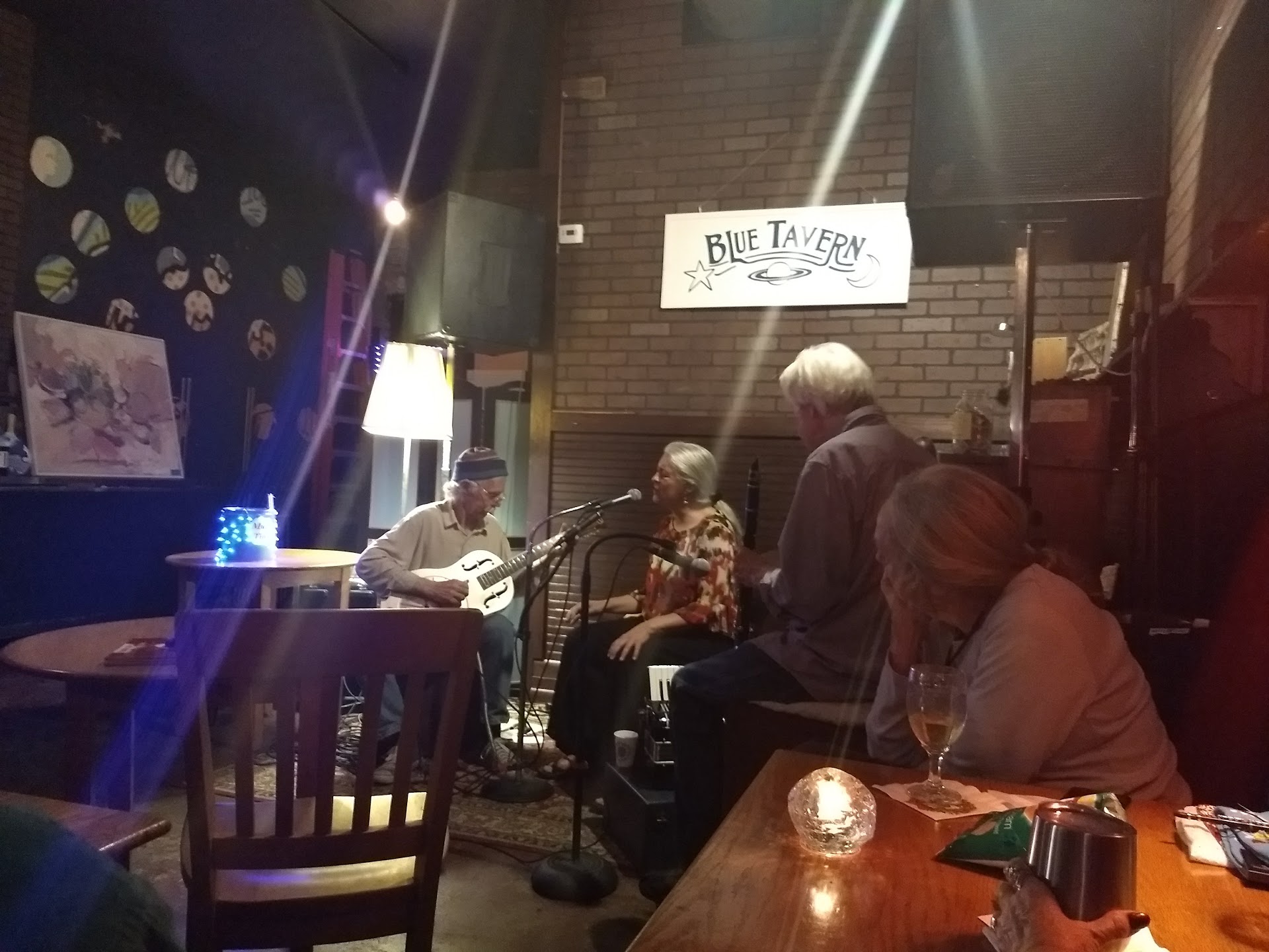 Read moreI had been looking for a Jazz spot when I found the Blue Tavern. And while it's a nice place, I came away slightly disappointed. First off, the service was excellent. The bartender served as both drink maker and waitress. Attentive, friendly and personable. Even the band that night was very friendly and willing to talk during their intermission between songs. This part of my experience was very pleasurable and IMO makes this a nice location as a watering hole. Now for the bad. The restaurant is extremely small. Which makes for a great environment for intimacy. But leaves a lot to be desired for enough space to move, dance or not feel claustrophobic. Furthermore, the drink and food selection was a little limited. While there was a nice variety of beers and spirits (and even wine) to be had, nothing really stuck out as a plus to drink. Also, if you have a taste for any food aside from salads and sandwiches, look elsewhere. While it's understandable that such a small venue would only offer such a limited selection, it leaves few options to get excited about. Lastly was the music. While it was very early during my visit, I was looking for a nice, smooth jazz band to enjoy (considering Google recommended it as such). Yet I was met with a Folksy, Country, 2 man offering. Again they were nice and played well. But that was NOT my desired music fair and kind of let me down. All in all, if you are looking for a cool, pre party watering hole, or just a nice "hang out" spot to unwind alone or gather with maybe a couple of friends over drinks, Blue Tavern is the spot for you. However, if you're looking for a place for a romantic date, or a music selection that goes beyond the Southern Niche of country music; you're better off...