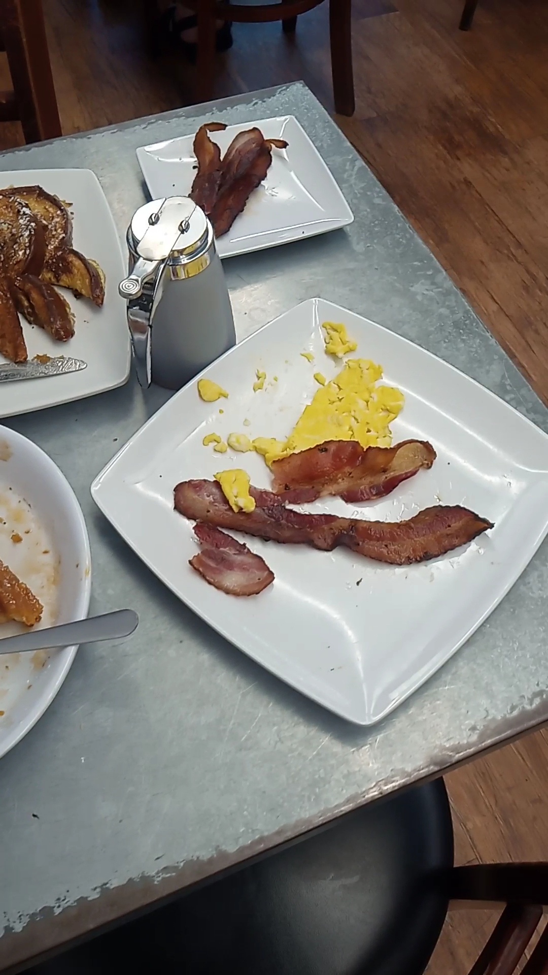 Read moreThis place is a Two across the board. The Drake looking greeter/ server (hopefully for Tallahassee's sake he is not the owner) he is the worst...his demeanor when you walk in.... is like he doesn't want you to be there... It was consistent with each guest. He has no smile either... No one wants to deal with a "Squidward attitude" when Paying for Breakfast the first meal of Memorial Day weekend.... And what's with the Burnt raw bacon , just throw the whole short order staff Away.... I understand this may be fine dining in Tallahassee but the staff will soon make sure that is not the case. The French toast wasn't good the Churo waffle was doughy in the middle and half constructed when they served it. All I wanted was the vanilla glaze on the side so it came with just the caramel glaze no whip cream and half cooked.