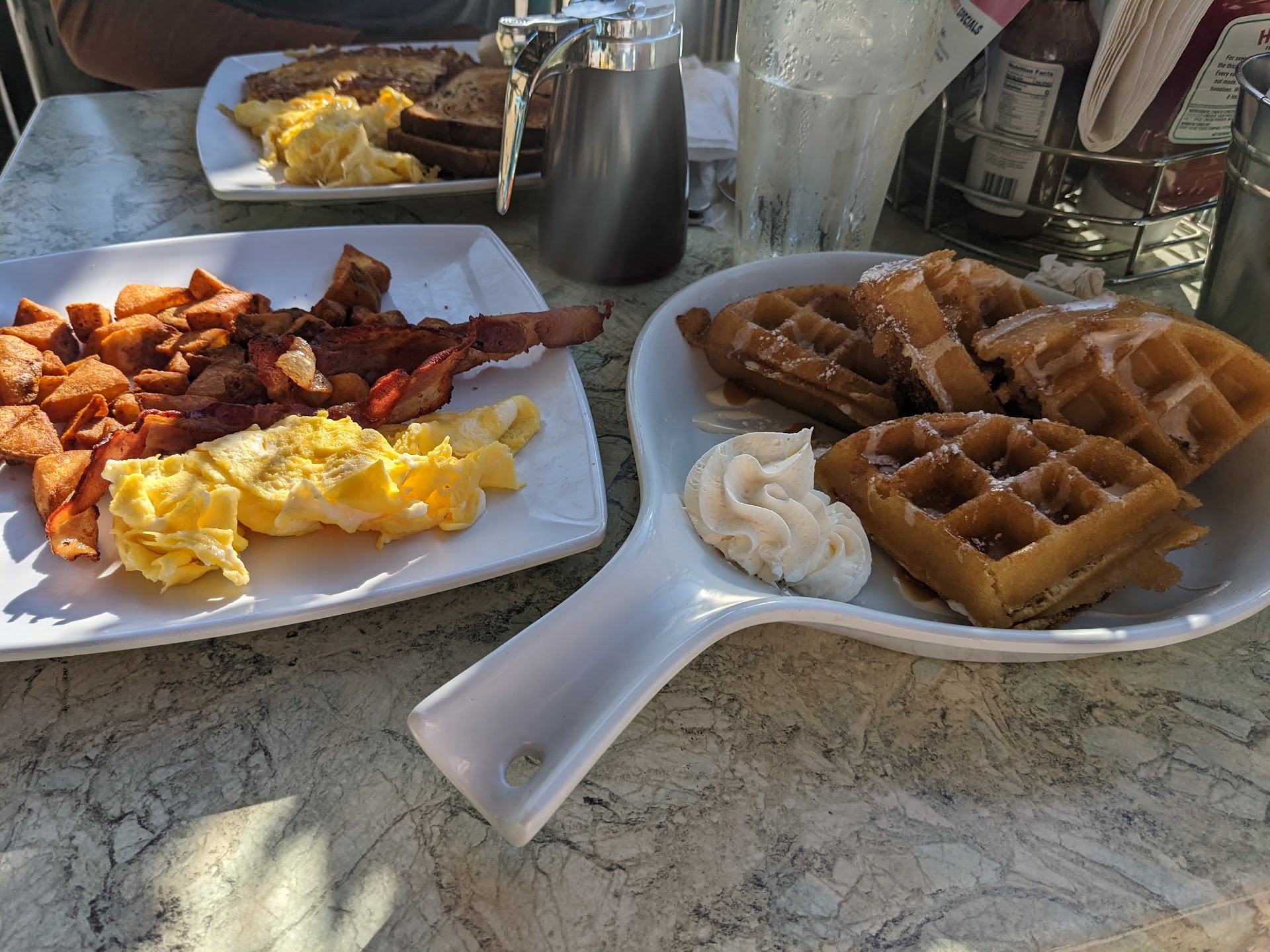 Read moreI enjoyed my breakfast with my daughter this morning. I was greeted by Haleigh. She let me pick a table outside. She greeted herself and took my drink order, a coffee. The coffee was warm... I’m a coffee drinker so it didn’t bother me much. Haleigh took my order, excited about eating at this Canopy location (last time I walked in at 2:32 BEFORE THE QUARANTINE). I forgot to ask for fruit for my French toast.... the location on N. Monroe 🙌🏾... I always got bananas and strawberries. So when my food came out, brought out by what may have been the manager. Whoever she was I let her know that I forgot to place the order of fruit and asked if Haleigh could put it in. The server, or manager, seems to be annoyed by my request; she puffed and said okay and rushed off. Haleigh brings the fruit out... the strawberries could have seen better days and the bananas were fine. I avoided feeding my daughter and myself the strawberries. When picking through the fruit for the bananas I saw that a few of the strawberries had decay spots and two with mold on them. The flustered server, possibly manager, just explained to another table that the arugula, delivered that morning, was not presentable and she will be sending it back and offered a substitute, spinach. So I wondered if my batch of fruit was older before the truck, which is not an excuse. I think you should always inspect before you deliver. Or was the fruit delivered in poor condition, which AGAIN, you should inspect before delivering. I enjoyed my breakfast and the outdoor dining area.