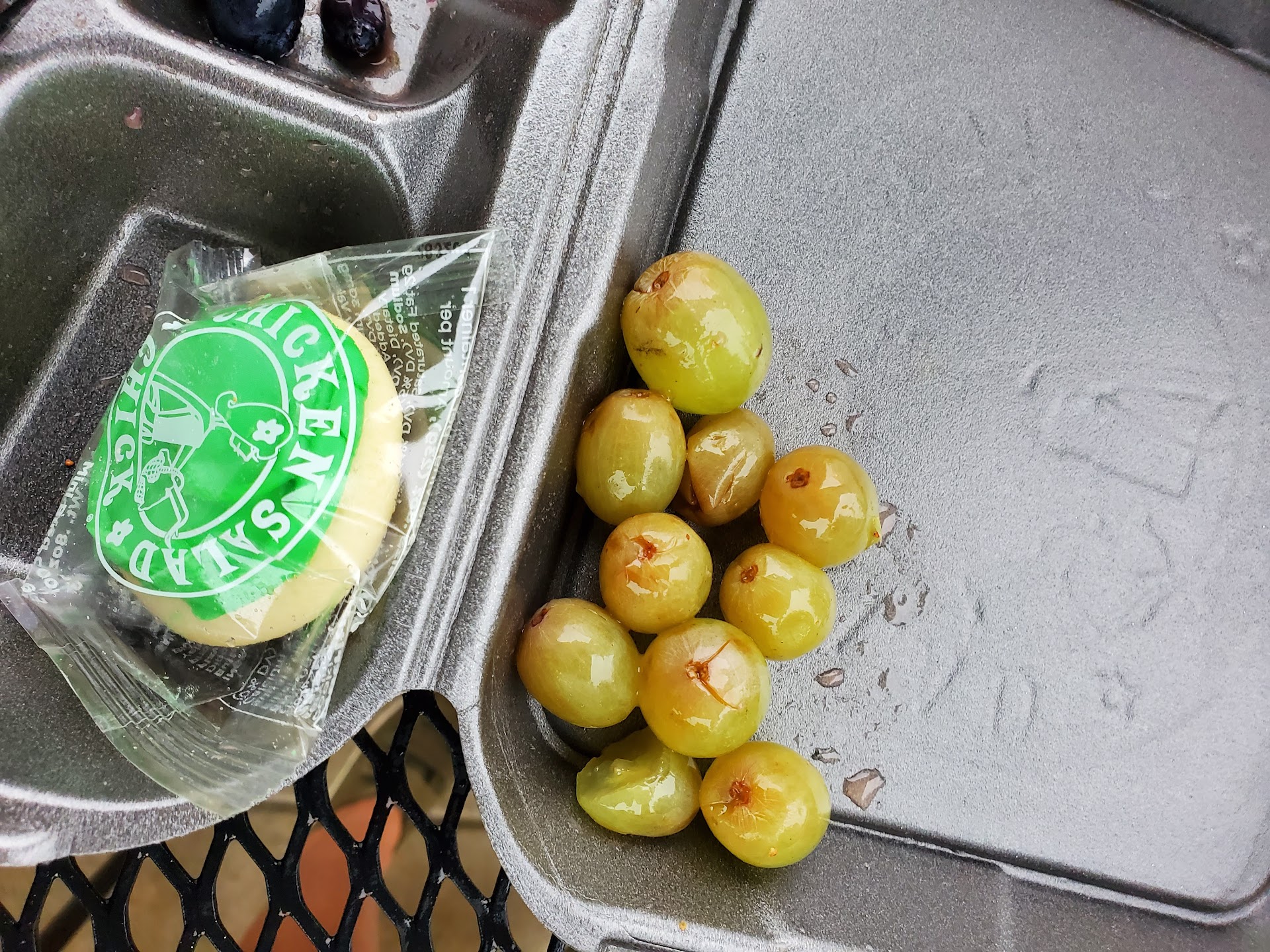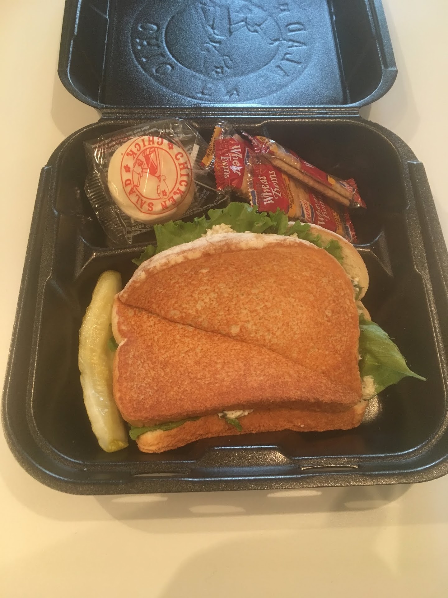 Edit for owner comments: the grapes were most of the chicken salad scoop- they should be cut up to not get a whole mouth of just grape when all flavors are supposed to meld together. As well as I feel like I didnt get my money's worth of food. The chicken salad might have had secret spices from the company, but I unfortunately didnt taste any of them or any salt or pepper, which had to be added for me to actually eat it. And the grape salad I tried was bad because of the cream cheese mixture itself that tasted sour and wasnt very sweet. And yes I tried everything together and the cream cheese mixture seperate. Please dont assume your customers dont know what they are talking about, you never know someone's background and experience, and I will not be back to try anymore...