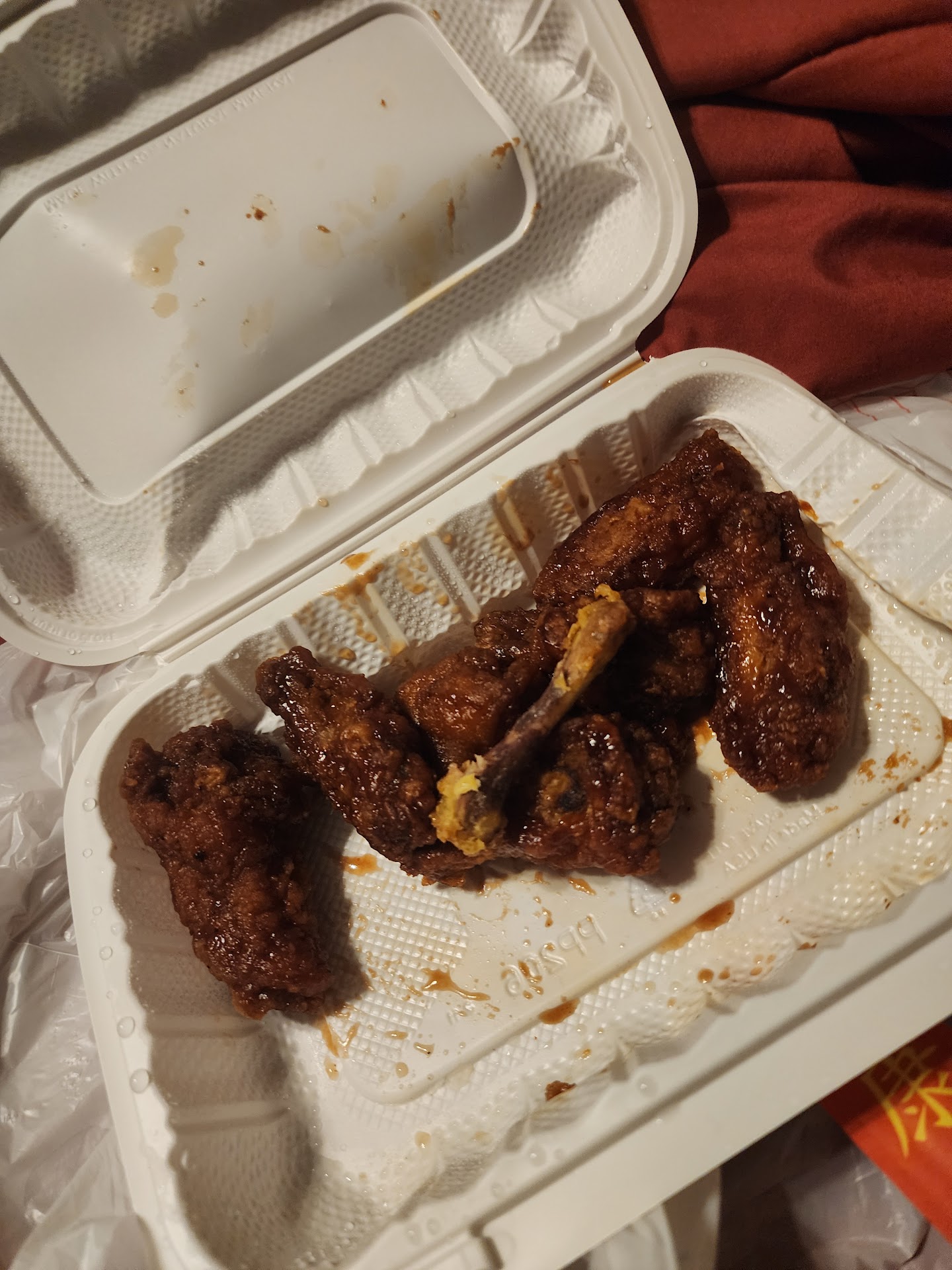 So 9:00PM rolls around and then 9:15. I call the restaurant back and she tells me that the driver just left. Which means she is lying now or that she lied to me in the beginning. The driver pulls up at 9:52PM with the food. And it is ice cold. And when I say cold, I mean cold like food that has been left out and sitting. Anything that was supposed to be crispy was now extremely soggy and inedible.