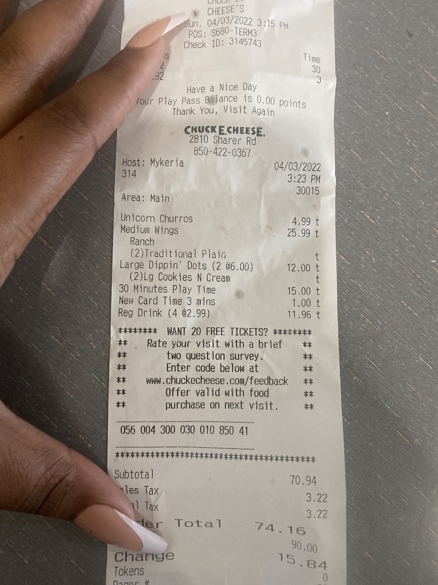 Worse experience ever. Party was 3-5 one pizza came out at 4:10. We ordered 2 samplers that didn’t come out in time. Party host was unprofessional. Took our pizza order an never came to back check on us. We literally had to run her down in order to get updates about our order. We were given cups no napkins or forks. We weren’t given lids or straws for our cups. The party host absolutely sucked. I will not visit this location again. It was ridiculous. Staff were too busy doing TikTok dances that they couldn’t do their jobs an be party hosts like they were supposed to be. Party host didn’t give out our pizza or cut our cake. We were so thirsty and hungry and had no updates about our orders. The two cooks in the back had bad attitudes weren’t listening to customers an acted like they didn’t know what they were doing. The older black cook had a bad attitude an got loud with the customers about their orders. This was a very chaotic an unprofessional experience. Party host never came back to check up us. The manager was walking around not giving customers any attention. This was a horrible experience an this location needs to be shutdown. Parties were piled up in one area and we couldn’t move around like we wanted to. People from other parties were standing over us an walking through every 2 minutes. We couldn’t enjoy ourselves at all. Our party host only came through to drop off the ticket for the party. We were left no pitchers to drink an only poured one cup of drink. We were given one pizza for a party of 5. We left hungry an agitated because the party host didn’t do their job. We deserve a...