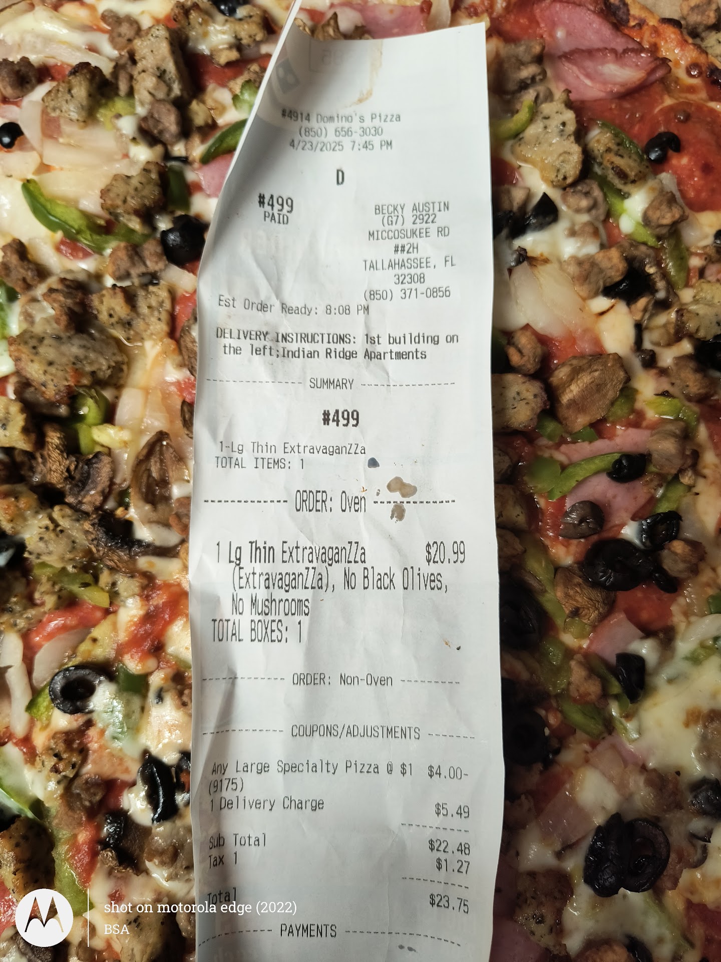 Ā Ā Ā Read moreThis was the absolutely worst experience Iāve ever had from any delivery place. I called to place an order, and after they told me I was out of their delivery area, I said I would tip the driver extra if they could still deliver since the other dominos was not answering their phone. They agreed to deliver to me since I was only 10 minutes away. I placed my order and was charged $30. After waiting for about 90 minutes, I called to check on the delivery. A manager picked up my call and told me that I was out of their delivery range and that they never even took my order. I explained my situation and he kept repeating the same thing over and over again, insisting that I never placed an order. Well I either teleported into a parallel dimension where I never placed an order at this dominos or this manager literally stole money from me and insulted me to boot. The manager in charge of this place is the rudest most dysfunctional person Iāve...