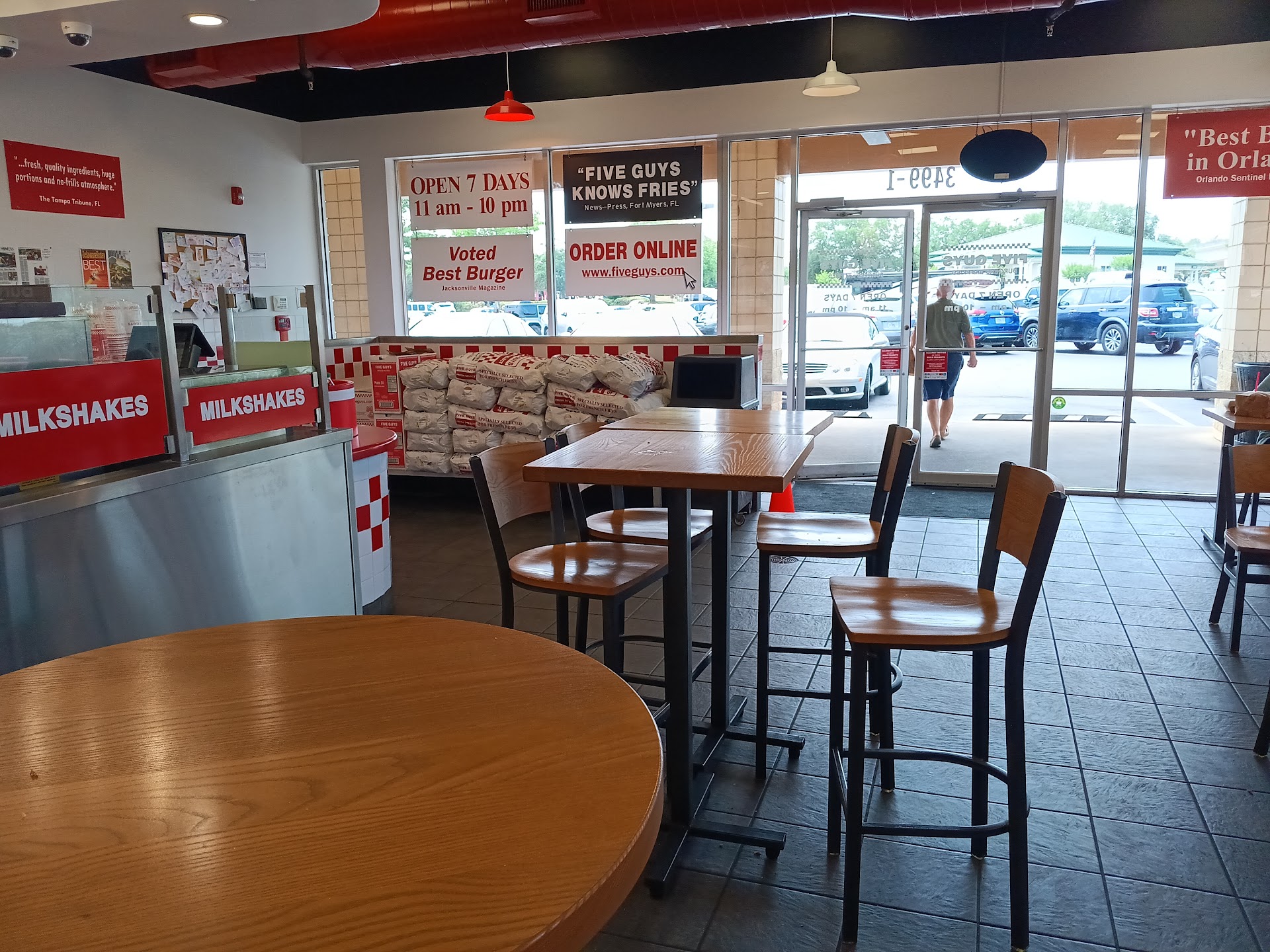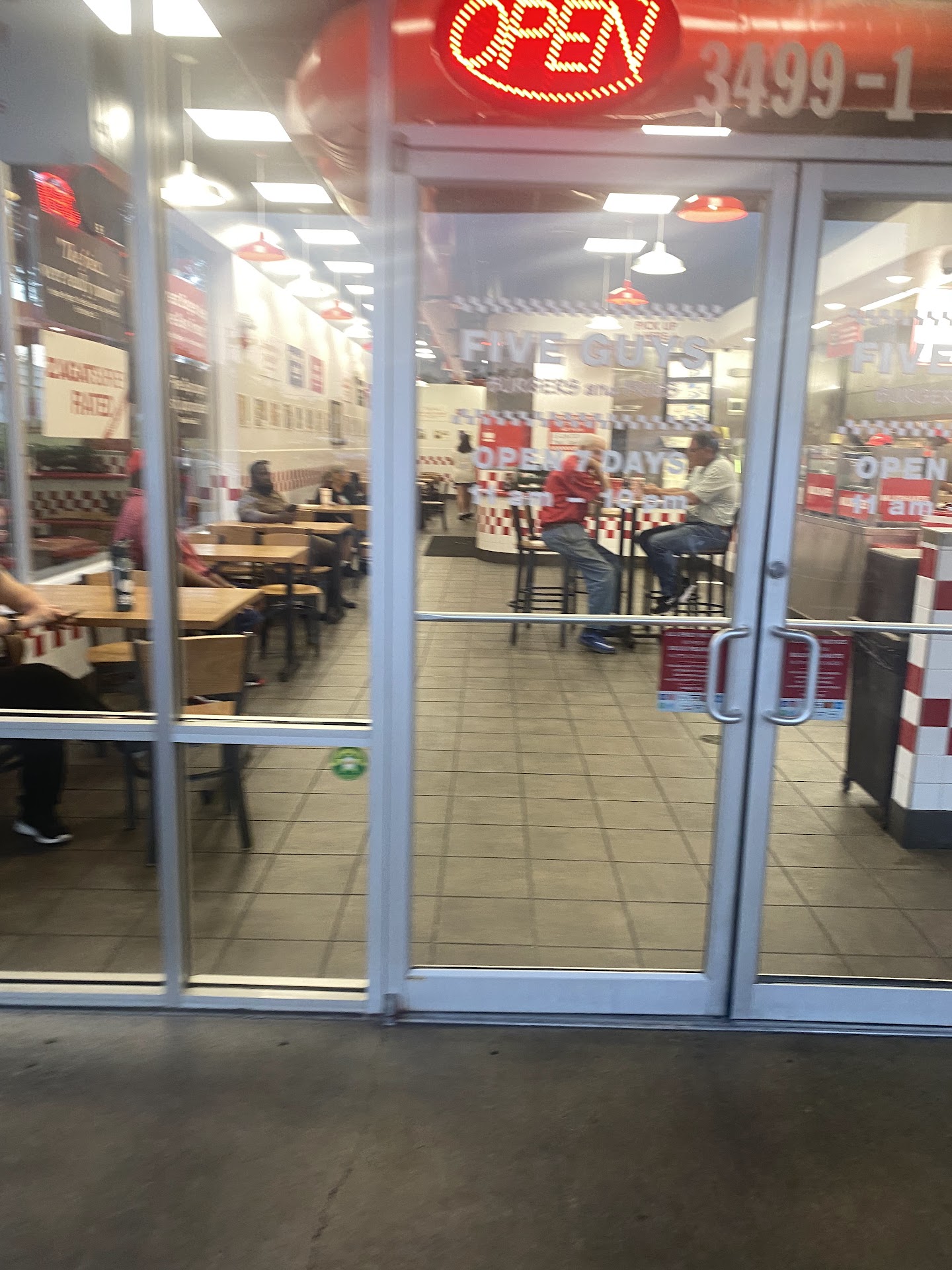 Read moreMy wife and I came here a few days ago. As someone who used to work for the franchise, I feel I have a higher standard for this business. Teresa was there and welcomed us through the door while she was cleaning the glass. According to my receipt, Nadaijah was my cashier. He was extremely friendly and provided great customer service. While we waited, my wife changed our baby, and I used the bathroom, which was nice and clean. Here is my only complaint. The girl running expo called a number after ours, and we kept waiting, which was perfectly fine, but she then looks to us and asks for our number. I told her, to which she replied, "I called that number a while ago." Before giving us our food. While, I'm not sure she intended it to be rude, even our friend who was eating with us felt that it came off that way. The food was great, super tasty and made exactly as we asked. I love 5 Guys and will be back. Hopefully, next time the expo girl will be in a...