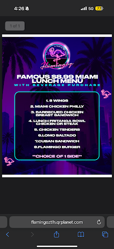 Read moreMy first and last visit to this establishment. My friend and I arrived around 3pm after seeing online that Flamingoz offers lunch from 11-4. Upon arriving, we were told to seat ourselves and that our server would be with us “shortly”. We sat for about 15 minutes before someone finally brought us waters, and another 10-15 minutes before our server arrived to take our order.