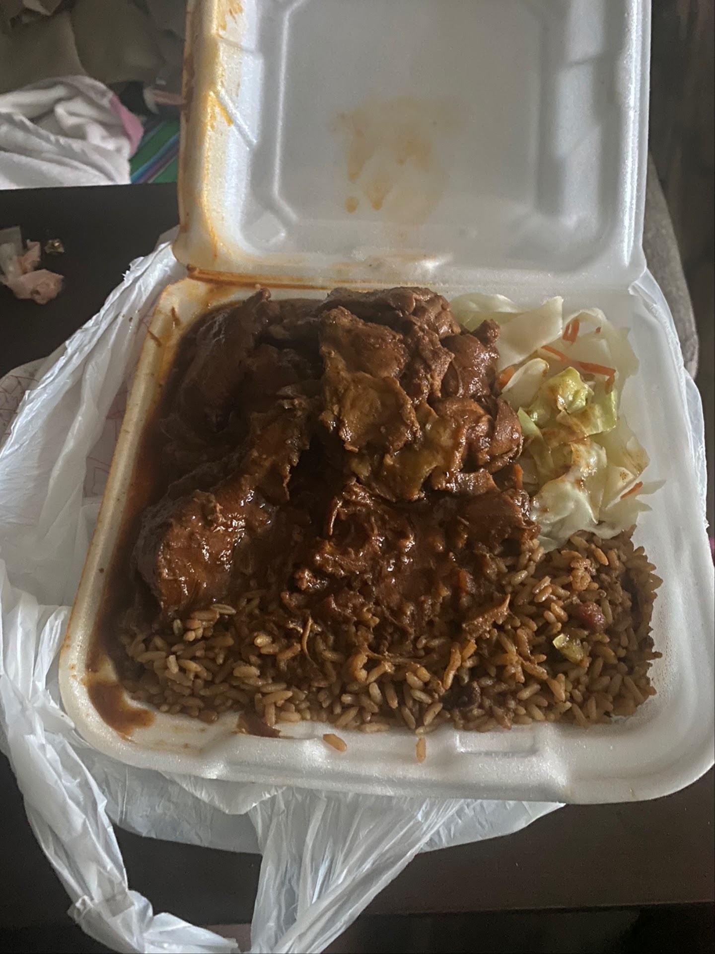 Ā Ā Ā Read moreNo menus, no prices listed on the tacky handwritten whiteboard menu. Lunch portion was $15!!!! (no drink) for oxtails rice and cabbage. Tails were cooked ok, but ruined with a gross sugary gravy sauce that smothered everything. All food is served in to-go Styrofoam containers and plastic forks and wrapped up plastic bags weather you are eating in or not. Gravy was leaking all in the bag and table. I threw most of my food in the trash.