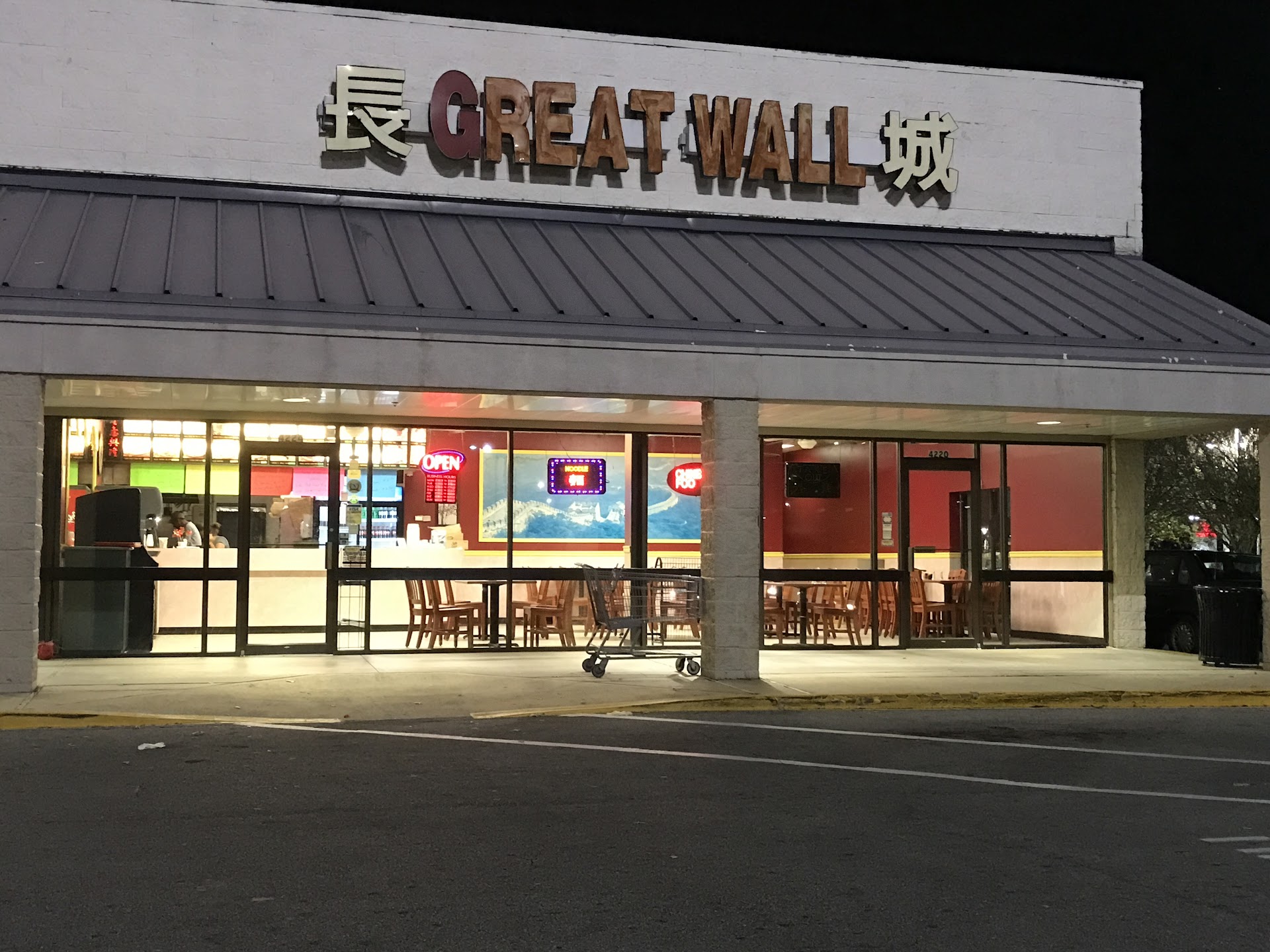 Read moreI love chinese food. Coming from South Florida, I've only managed to find one place that's decent up here (China Delight), but Great Wall is hands down one of the worst restaurants I've ever been to. I'll also start off by saying that I NEVER take the time to write reviews, until now. Service was decent. My expectations if the food were low when I walked in the door. I figured, if its half decent, it'll be worth the $11 I spent. As if the rice, soup and veggies werent flavorless enough, the general tso's sauce was disgustingly thick and overdone. After being less than halfway into the dish, I bit into a lovely piece of breaded fat, spit it out and walked out. Feeling horrible, I had to pull over on the side of Tennessee and throw up. At the time of writing I'm still feeling horrible. I just hope I can make it hrough the night. Please, please stay away from...