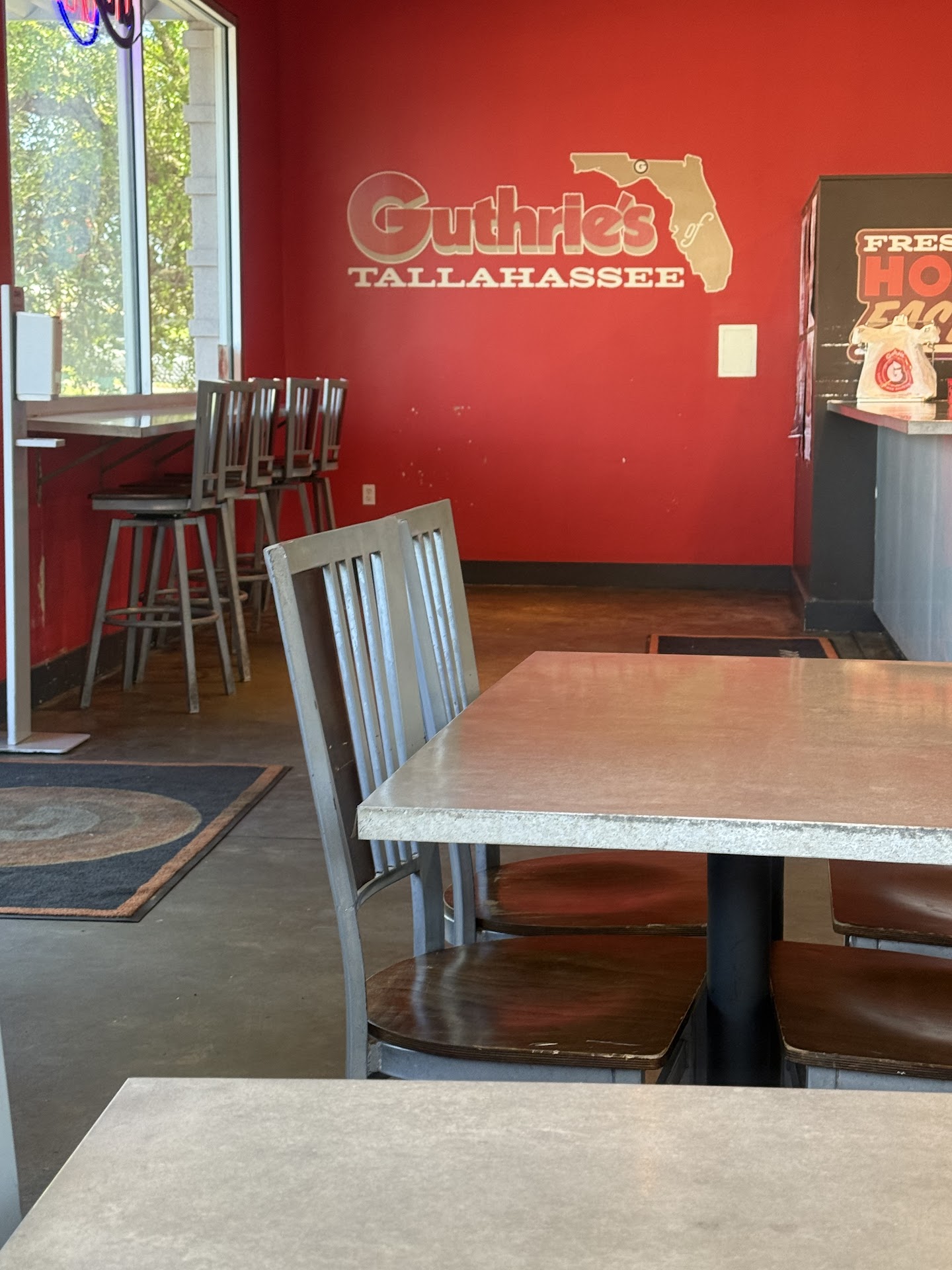 This was by far the worst Guthries Iâve ever been to. We walked inside and no one was at the front counter and all the tables were dirty. It took 3+ minutes for someone to come up from the kitchen where we could hear everyone talking and cursing while goofing around. None of the employees had on any sort of uniform, their clothes were all super casual and mismatched.