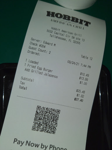 Read moreI go here quite often as I love the food. I walked in on Sunday with my gal, about 1pm. Ordered a beer for her and a Pepsi for myself. Now there was only 1 bartender which is not unheard of. She brought her beer and all of a sudden GONE? I figured maybe she needed to change the tank or something. Almost 10 min whent by & when I caught her attention she was seeing to someone . I very nicely inquired aelsebout my soda. She gave me the dirtiest look and said "I HAVE OTHER TABLES TOO" in the nastiest way possible. Mind you she never said anything earlier about being short handed which I would have understood. People get busy, I get that. However the way she went about it was TOTALLY UNACCEPTABLE! I paid for the 1 beer and went to waffle house for a smile and good service. I spent $2.50 at hobbit when I was ready to spend my usual $100 + on a good day eating and drinking there. Had she been even the slightest bit of professional I would have understood and waited patiently for anything. Because the way she snapped at me for her being overworked after lunch time. I find it real difficult to return here. I have been going there for the past 3 years & I spend upwards of $75 each time I go. However I was not going to be abused for something I didn't do. So I left. Have not been baxk yet. (Little background...I come from the service industry she only had maybe 6 tables? And could not do it. If I was her manager I would have FIRED her on the spot for being so unprofessional to a...