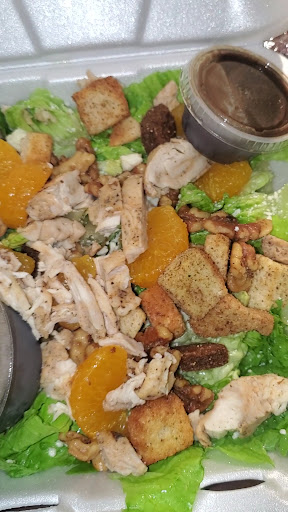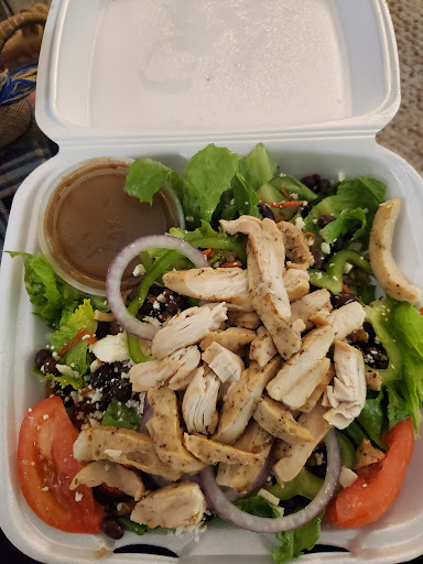 Service was horrible. I am an out-of-town visitor who looked up the place online for good salads.. It was recommended and said order online, come in in 30 minutes and it will be ready! perfect! Well, showed up, place is empty, go to the counter and find out that no one knew about my order.. uh oh.. Young lady said oh we just had a big rush!! There was a couple finishing up and a family of 4 waiting at a table - oh my!! so they said just a minute.. Checked the fax machine and there was a fax sitting there..she ssaid, oh I thought I heard the phone ring!! So, after reading my order - - no special requests - She confirmed that I ordered a regular black bean and warm grilled chicken salad.. She repeated, you want chicken right?? Yes I said. Then i saw split pea soup on the board... I asked is there meat in that or any butter or cream?? she went pick up the pot lid, stirred and said.. no meat or cream.. REALLY?? What if I had an allergy?? She wasn't the cook!! OK so I finally get my to go order...go back to my room...open my salad.. guess what???? NO CHICKEN!!! WHAT!!! NEVER AGAIN even though the salad was fresh but I wanted and paid for...