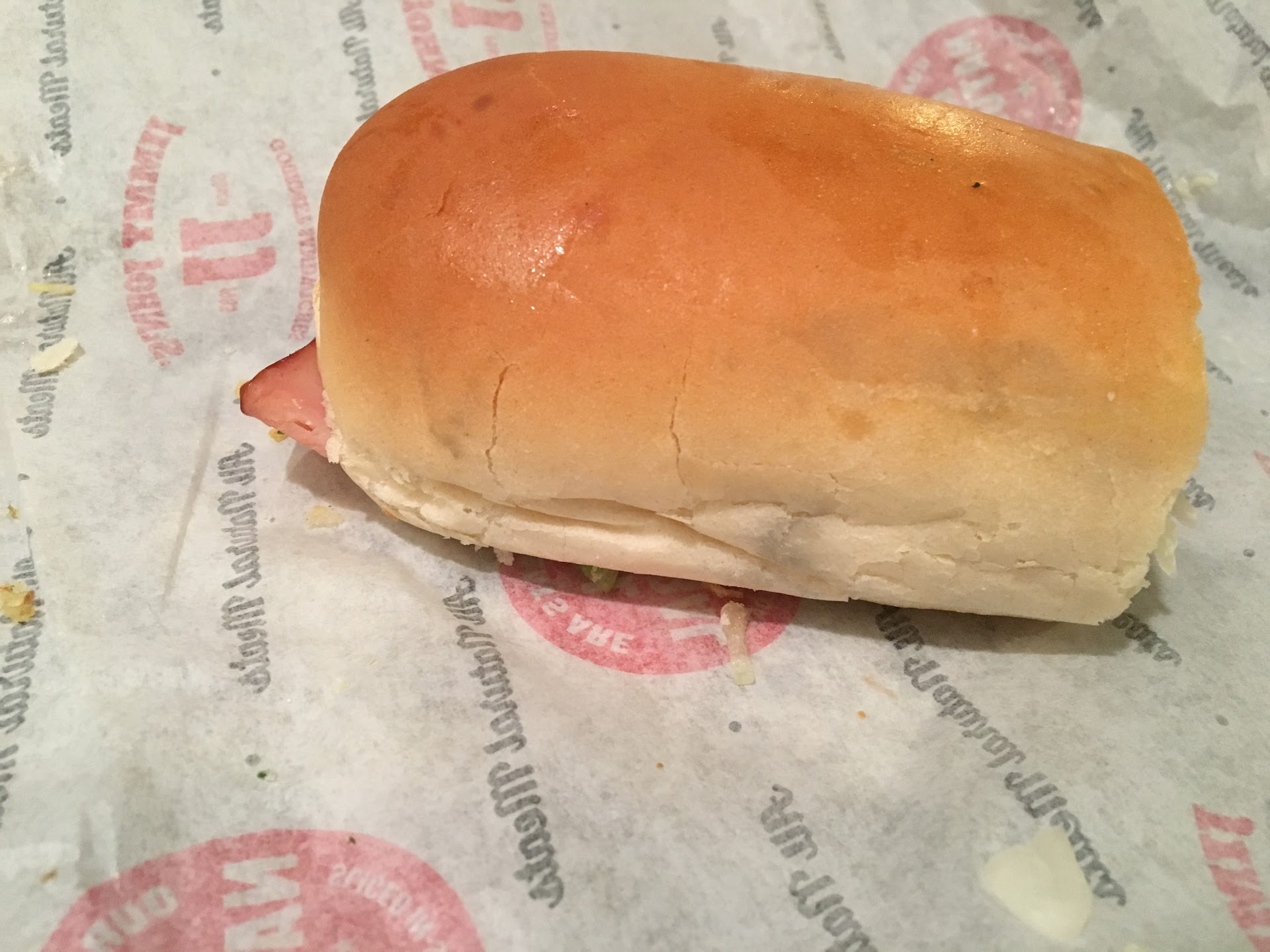 First time ever ordering Jimmy John's. I used the app to make my order for delivery and chose the JJ Gargantuan sub. I choose to have it on wheat which is a $0.70 upchrage (problem number one). My sandwich arrives freaky fast as they say and when I pull out the sandwich I instantly think there had to be a mistake as this is not what I ordered. The JJ Gargantuan is a "gargantuan sub" not a regular sized club sandwich. I unwrap it and behold it's my order smashed between two normal sized slices of wheat bread. Definitely not right.