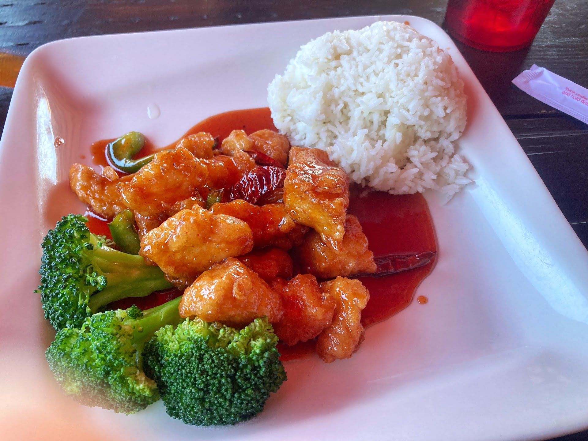 We ordered 3 meals from here. It was just alright and I think I'm being generous giving two stars instead of one.. The chicken for all three meals had a sponge-like texture to the breading and the sauce was like water, very thin. The fried rice was pretty bland like a couple carrot cubes (where's the veggies?!) I think I saw one piece of egg, and lacking in the "fried" department, there was a $2 upcharge for this too. Could definitely add more sauce to the container that comes with the Rangoons, there wasn't nearly enough. The egg rolls were pretty good. My receipt did not match my order either, something about their system or register wasn't ringing things up correctly? Idk anyway it makes it difficult to itemize and verify your being charged correctly and in our case we were splitting takeout with a jacked up receipt and no menu other than what Google provided. In other words I won't be returning and just giving an honest review for others, I...
