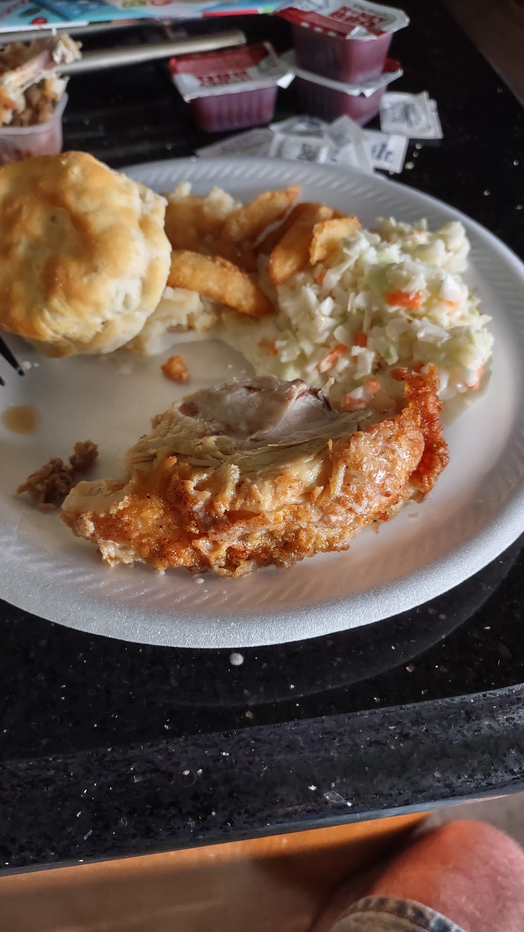 Read moreSo anytime I've gotten food at this KFC they forget something on my order. 5 out of 6 of my visits to this location (this year alone) they have forgotten to put the Mac & cheese I ordered in the bag with the rest of my order. The 6th time I went here I was told I had to wait 30 more mins for 2 chicken pot pies (this was 40 mins after ordering them) so in total a 70 min wait at this point, THEN they handed my pot pies out the window to another customer (the woman who handed it out the window bluntly told me I can wait for the next one after a male employee apologized and told me those where for my order) because they were focusing only on their drive through for some reason (i assume their time was bad atvthe window) so I had to wait another 30 mins before having to catch and prevent the woman from handing out my order AGAIN. I waited a total of 2 hours almost for 2 Pot pies and a kids chicken tenders meal. Also if you need to refund an order and ordered online you'll have a nice hour long wait on the phone with their corporate because they can't do a refund in store apparently. In all I don't feel the employees are bad I feel that the communication within the store between employees needs work and it would fix...