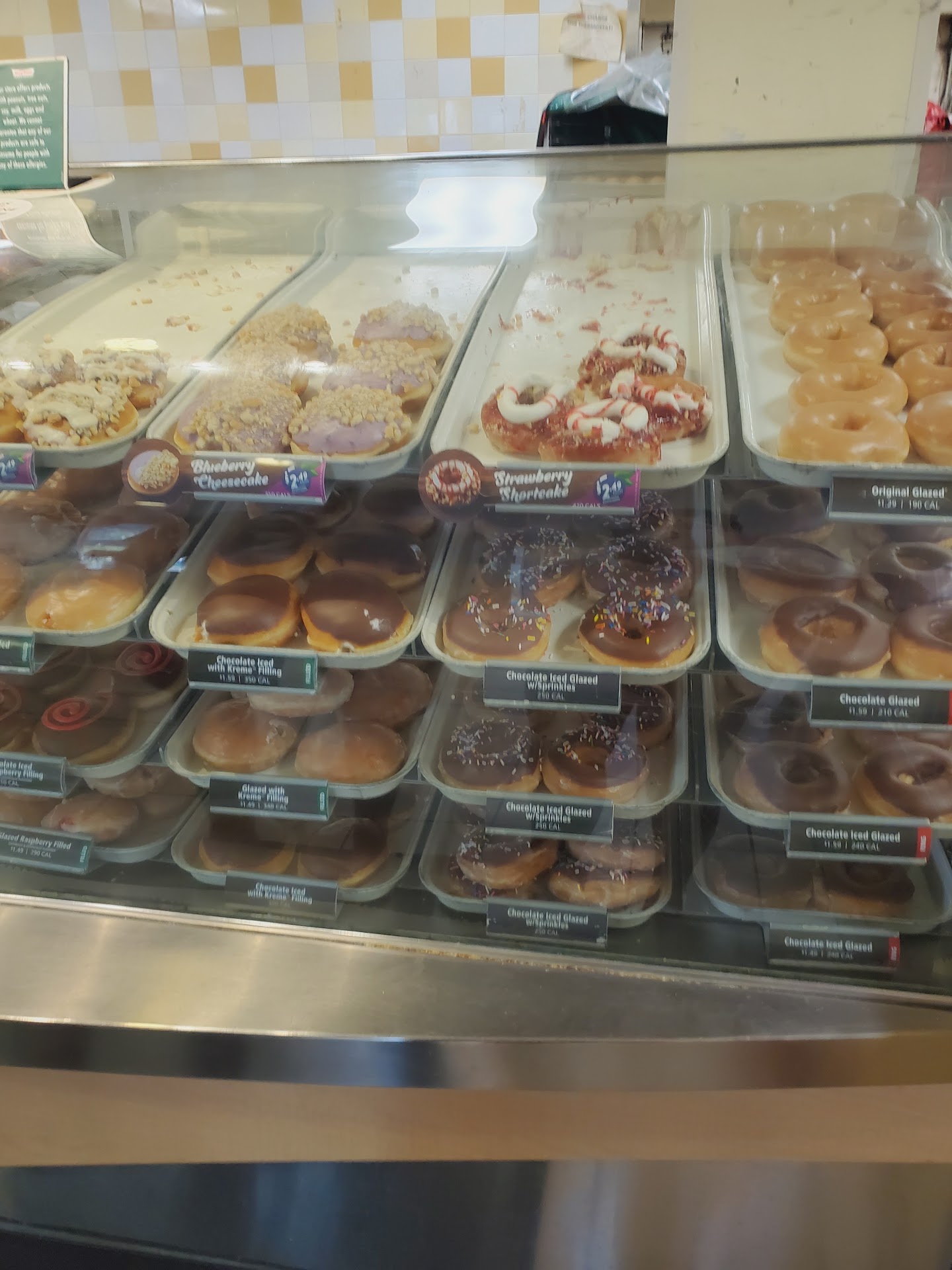 We live in the Houston area and for some reason there is only one Krispy Kreme franchise in the whole entire city and it is nowhere near where we live or work. So we were excited to see this location so near the interstate when we were coming back from our Florida trip. That was the only thing extremely positive that we can say. The hot now light was on when we pulled up and associate working the counter was busy on her headset with a drive-up order. She motioned and spoke softly for us to wait just a minute while she completed the order at the window. When she finish she asked what she can do for us and I asked her if they participated in the free donut when the hot now light was on on the Marquis and she said the light's not on and I turned around and looked and she was correct it was not on, she was correct. I said it was on when we walked in and she said well it's not on now and I said well it was on when we came in the front door and she said well the other associate is cleaning the conveyor system so it's not on now. I swear I understand I said but we waited for you, as you were completing the drive-up order and she said well the light's not on now and I said never mind, it's not worth arguing over a free donut. And I asked if they were doing the Christmas special donuts and she said no we're not doing those, it was the day after Christmas incidentally. So disappointing for us, but we wanted to get some of the blueberry cake donuts and they didn't have any of those either. So not the best overall trip to...