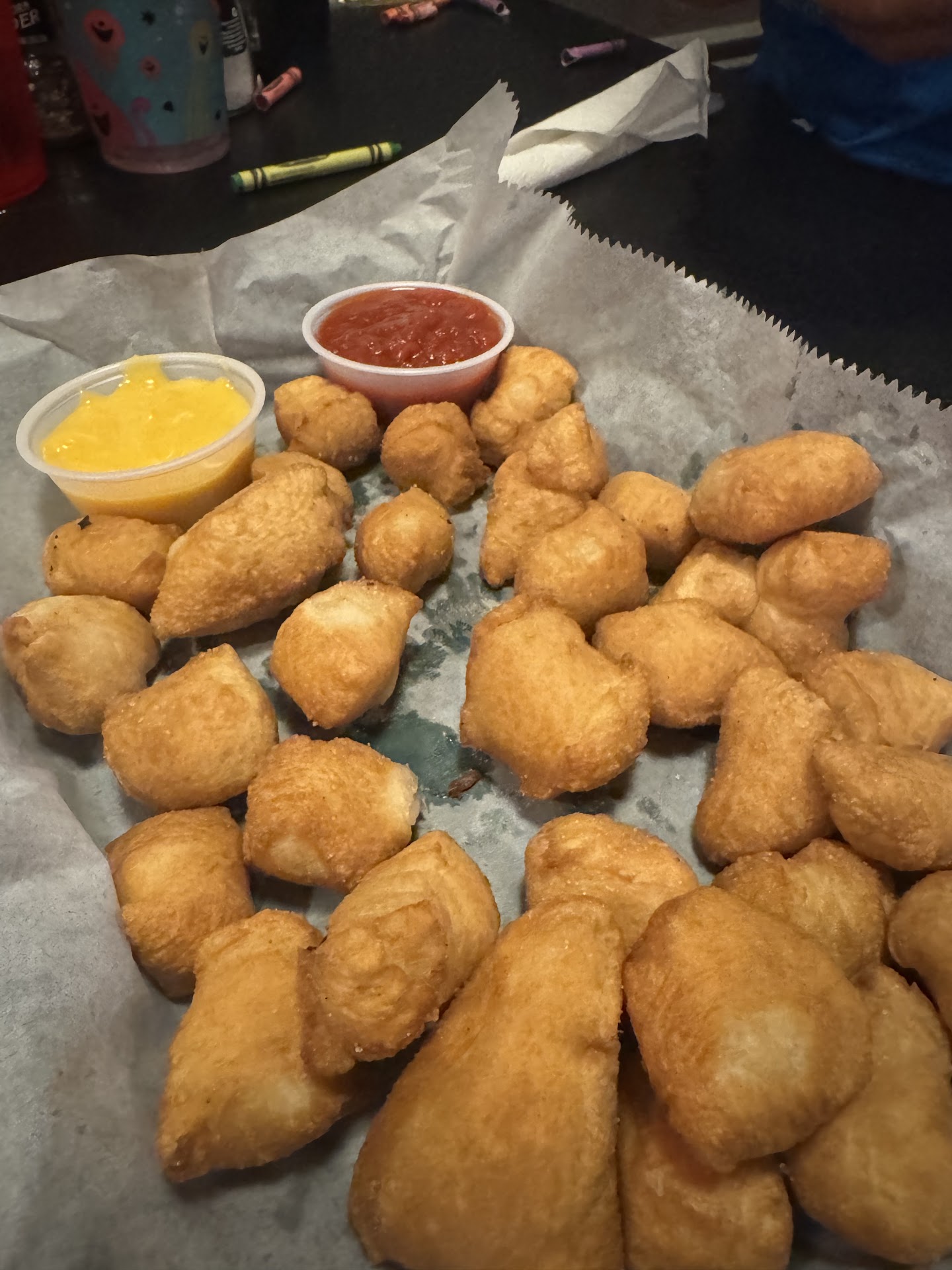 We got: The Knuckle Sandwich, The PB&J Burger, and the S’more Than Words Burger, along with some fries, coleslaw, onion rings and hush puppies! The Knuckle Sandwich was an AWESOME combination - pastrami and a hamburger?! That’s heaven!! The PB&J Burger is an amazing creation - it may sound weird, but we first tried peanut butter on a burger at a fancy restaurant in Orlando and we never looked back. Try this one - the sweet and salty combine perfectly for an amazing bite! And finally the S’mores burger…oh my LORD was this good. I have never had anything like this and I am so, so happy we ordered it. It was unlike any other burger I’ve ever had and the taste was SO good. You need to try this hamburger when you’re here…but to be fair, any of those options is a home run! This is one of those places where you could order pretty much anything and be super happy. But since they have really unique burger options you don’t see elsewhere, why not try them?!