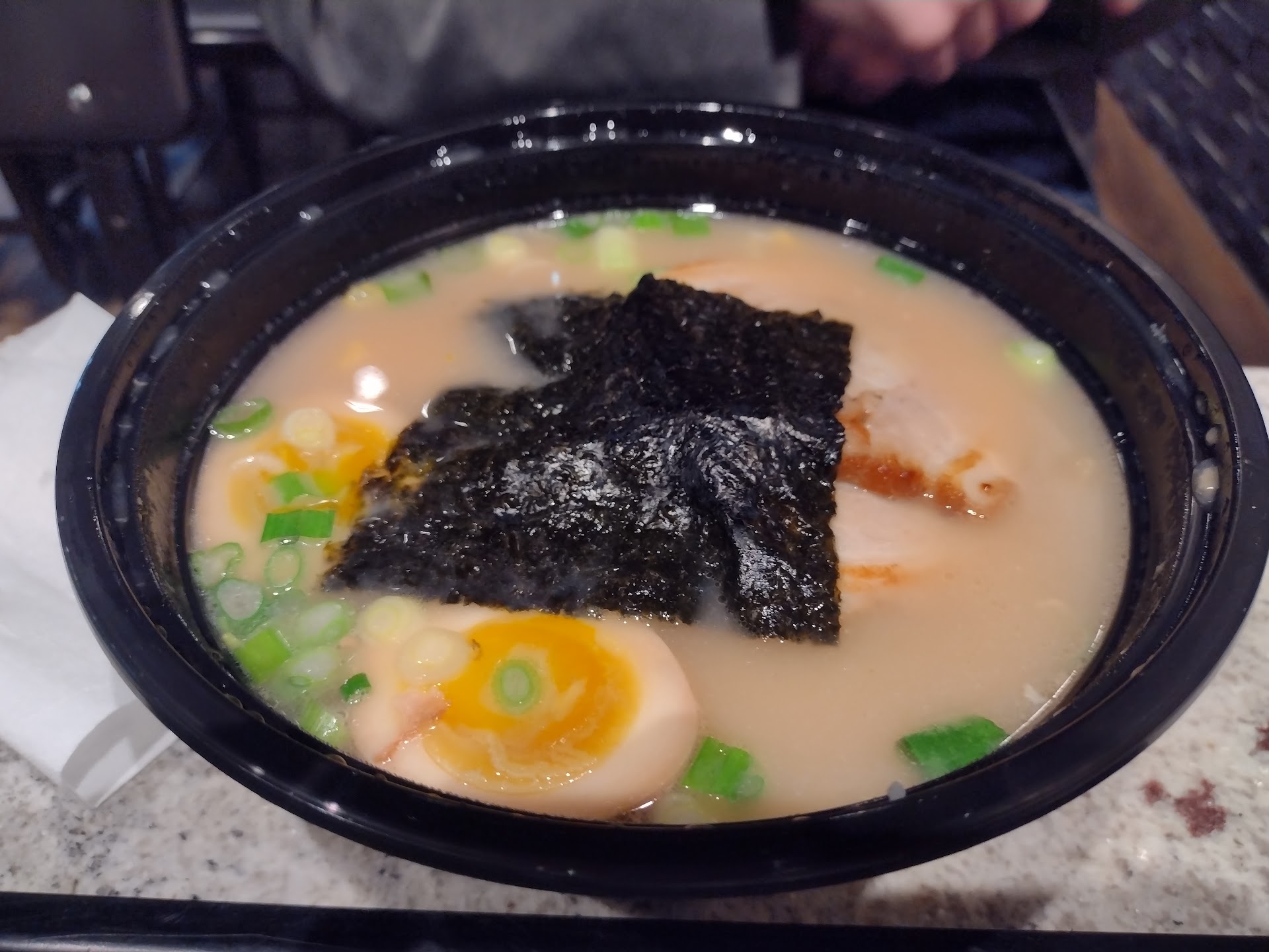 I am firmly against the idea that the best version of a dish is to be found in its country of origin (actually, one could debate whether ramen is Japanese or Chinese!), but I haven't yet been impressed with any ramen I've tried in Tallahassee. People do like the ramen at the local restaurants, so I think that what I believe holds true: your particular tastes matter most. I am not a huge Japanese food connoisseur, but I've had some darned fine ramen in Japan and I just can't deny it suited my taste far more--even at chains. I think the thing that fails my husband and I's tests most is the soup, possibly the most important part. I've tried making tonkotsu at home, and it always ends up having a strong, overtly meat flavor that isn't smooth. This is the same at this restaurant and Ur-Bowl. I preferred soup in the vegetable ramen but it wasn't notable. The presentation was better than expected. However, the vegetable toppings felt a bit chaotic. I like broccoli, but it is weird in ramen. I'd rather have more bok choy, or just a ton of green onions. I did like the ginger on top, though, as ginger is usually a more interesting win for me. Bamboo shoots are very subjective and I gave mine to husbando. We had a side of edamame in the shell, and they were salted well. The melon boba was good. I didn't care for the service style of counter pickup, but the cashier was nice. The food came out quickly, too. The restaurant is new and clean. I think for the quality, it felt overpriced, but I know restaurants usually price how they feel is fair for business. I think I'll make my own ramen and look forward to our next trip...