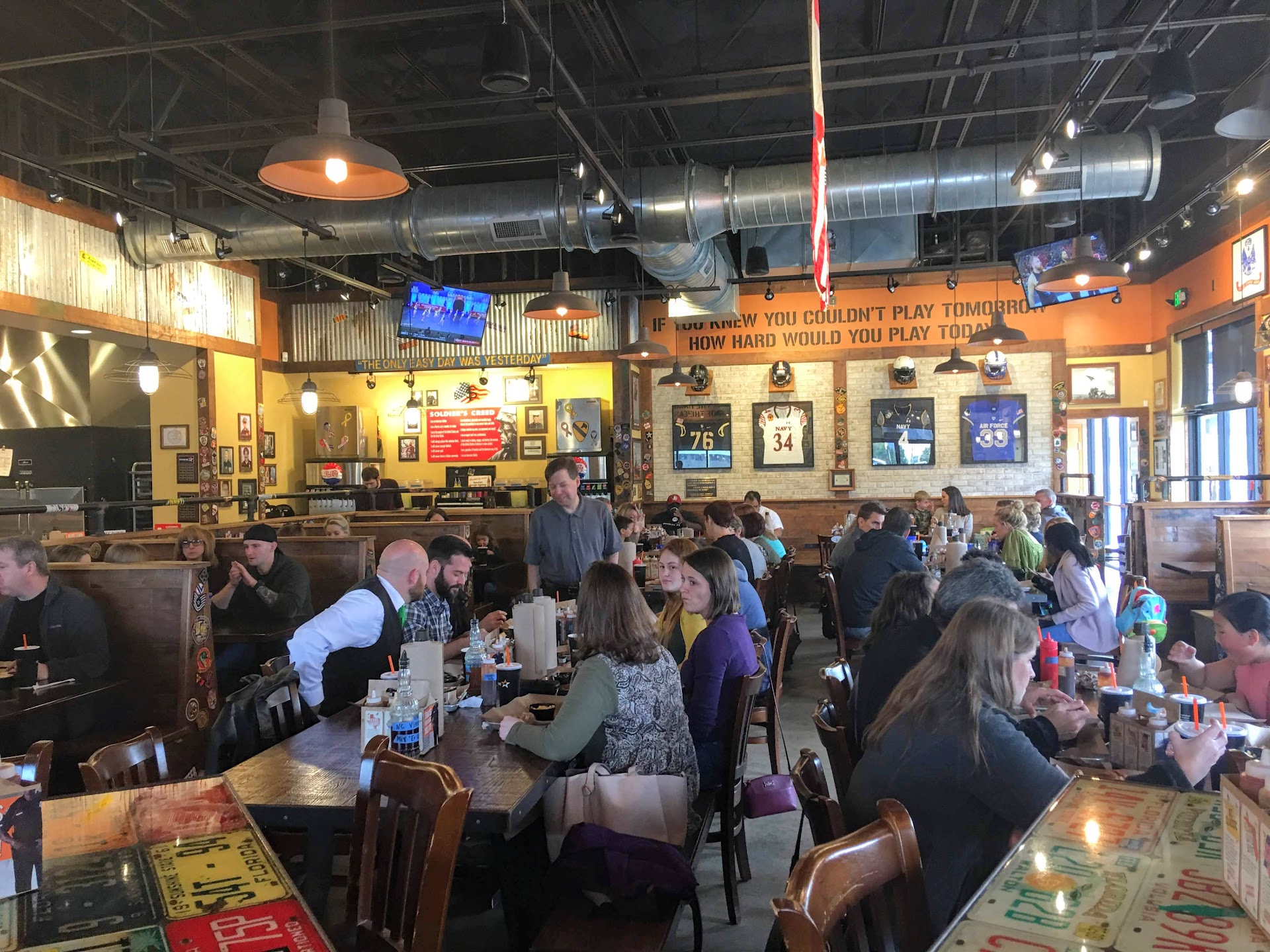 Patriotism and demonstrable respect of our armed services is at the core of this establishment - check out the "about us" on their very well laid out website. This is a welcome and refreshing theme and will surely attract active duty and vets alike. Many folks confuse patriotism with conservatism but nothing could be further from the truth (to me). I'm a proud liberal who is exceptionally patriotic, the son of a lifer ('54-'84), and who appreciates the red/white/blue and our men/women in uniform. No single political party is going to hijack patriotism and love-of-country!