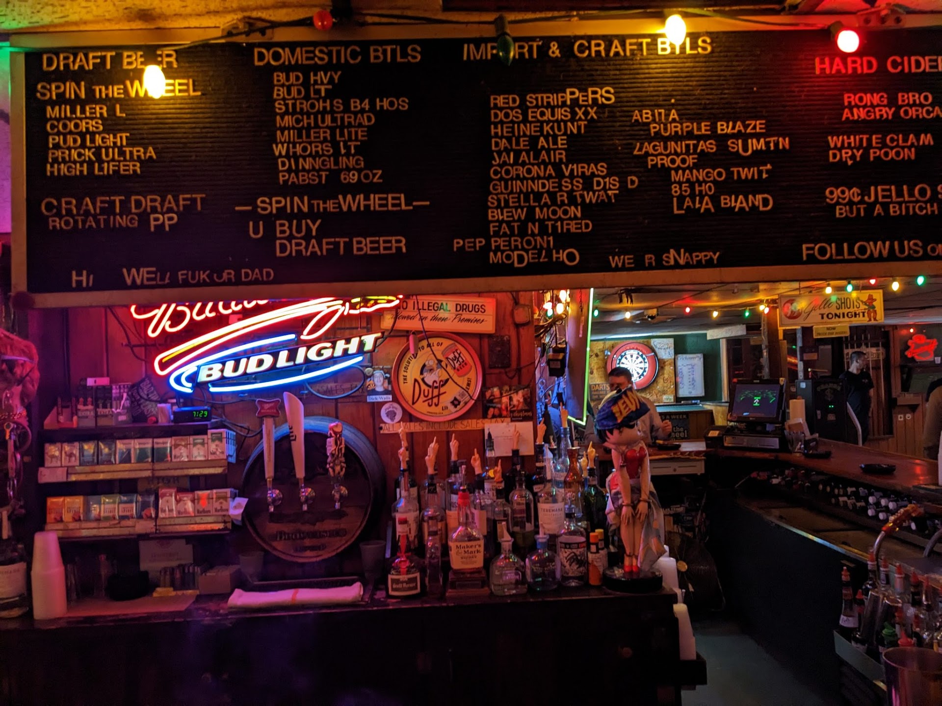 I seek out "hole in the wall" bars whenever I travel and have been to far too many. This is easily the diamond in the rough that doesn't need any refinement. Being surrounded by chain restaurants and gas stations hurts my soul but Poor Paul's gave me hope. Go in, grab a cheap draft, well drink, jello shot, spin the wheel, and/or play pool. Funny, classic decor with great staff and patrons. I'll be here for a couple weeks and I'm hooked. If Chilis or Applebees is your thing, take a ride on the wild side and check out Poor Paul's.
