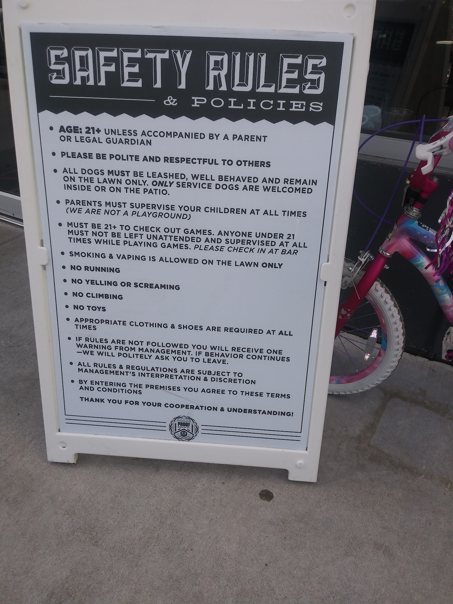 This is beyond ridiculous. If I had said that I was indeed her father, what is the logical next step? Would I be asked to prove that she is my daughter? I have been all over town to all kinds of businesses and family friendly bars (including Proof with my daughter) and never once has anyone dared to ask such a ridiculous question and then force us to leave.