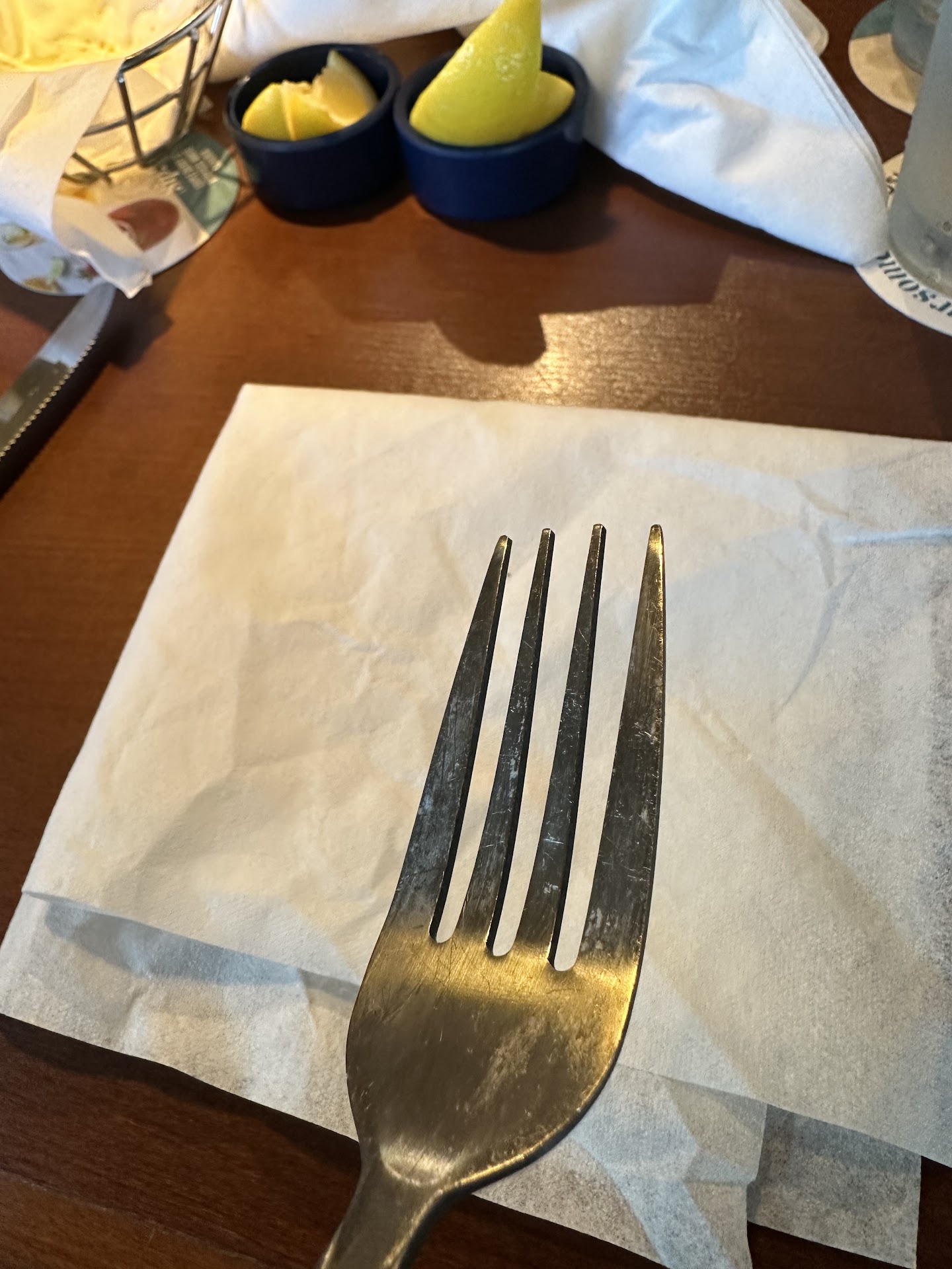 Now, let's cut to the main course. The food was cold and one of our plates was missing a side. When the missing side was finally brought out, it had a hair in it! Come on Red Lobster! I thought this was supposed to be at least somewhat fancy.