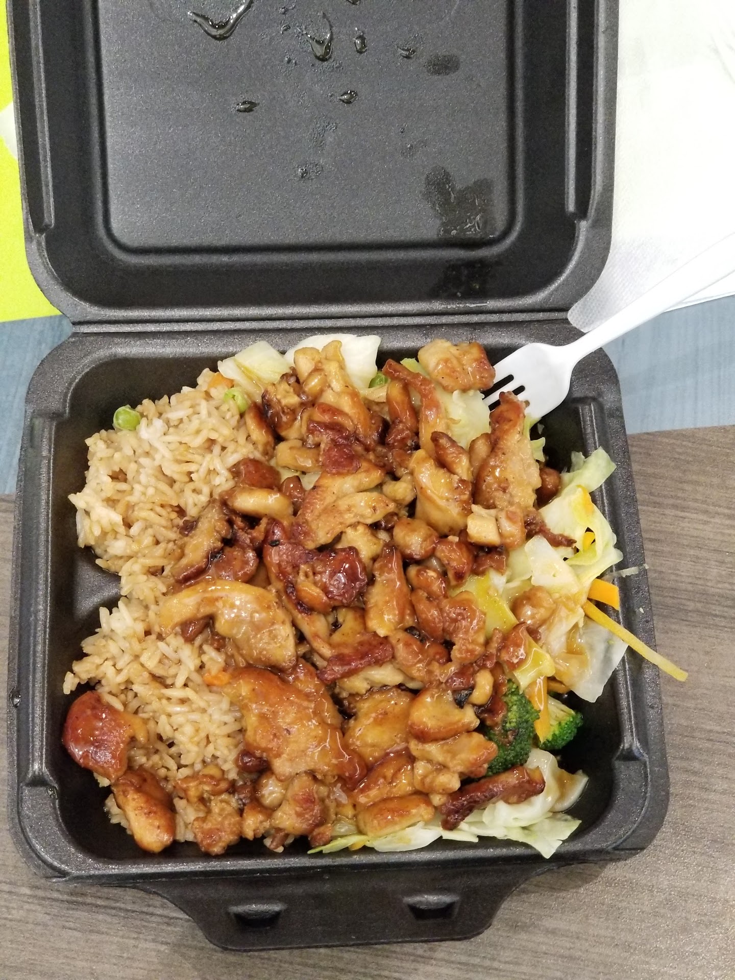 Read moreI got the box with the 4 california sushi rolls, 3 dumplings, a side salad, steamed rice and chicken. The sushi was a bit old and dry, but everything else was delicious. I spent about 14$ the box was 10 and i made it a combo for 2$ something more you get a drink and a chicken egg roll. The only thing that really bothered me was the wait time. I was in line for a good while before I managed to order. And then I had to wait a while longer for my box to be made. I could taste the freshness from the rice, chicken and salad and I really enjoyed the fact that it was not greasy food although it's from the...