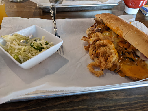 First off, I want to make it known that I attempt to be fair with my reviews so I will focus on the positives. Though I ordered the ginger slaw, they brought jalapeno but it was fantastic! It was a nice balance to the chipotle cheesesteak. I enjoyed that meal and though I felt like the fried onions were unnecessary, it was a solid sandwich and the right price. Good heat and flavor balance. We got the pretzel and would say that it had a good flavor but was too soft for my liking. Beer cheese sauce was tasty though. But now, what I'd consider mistakes. The beer list was outdated and it took multiple attempts at ordering something available. There was no new list. The variety was there but they had no west coast IPAs or amber ales. Ordered a Yuengling - the only decent domestic - and was informed that had tapped out. My guess is because everyone orders that for 2 reasons: it's the right price and it assuages people who wanted amber ales. Again, in light of being fair, I do appreciate their list but it just didn't have much for me. I don't like to pay to drink out but when I know I am, I want to order just one. But at these prices, I don't even think that was reasonable. I was overcharged for my 5 ounce pour by 50 cents, according to the menu. But I didn't want to haggle about it. The full size pour - which is still just a 10 ounce - of the Ghost in the Machine was 9 bucks, which was way too much. And since the menu was not updated, I didn't know it was that expensive. I obviously have not run a restaurant but I have purchased full sized kegs and I homebrew so I feel like I understand the value in the product. Which is why I don't understand why places charge 2, 3, even 4 dollars more than is reasonable for beer. It's gotten out of hand everywhere, if we're being honest. Our waiter was very kind and prompt, though it did take a bit to see him to start, which was surprising because when we arrived there was maybe 4 full tables. I didn't notice a problem with it being loud, as others have said, but perhaps part of the problem is large tables and therefore, distance between people. It was a decent lunch but I don't think the kinks are ironed...
