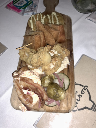 I had attended several events at The Edison Restaurant, and they were all great, but tonight was the first time I went for dinner with a group, so I thought I would take the time to finally review it. Our hosts were from out of town, and they had heard good things about the restaurant. They ordered 3 appetizers: Southern Board - Fried Gulf Oysters, Brown Sugar Bacon, Pimento Cheese, Pickled Vegetables, Fried Green Tomatoes, & Toast Points Florida Board (Deviled Crab Dip with Toast Points, Pimento Stuffed Charred Cherry Pepper, & Tamiami Egg Rolls, Served with Dixie Hwy Sauce) Meat & Cheese Board - Seasonal Meat and Cheeses, Honey, Tomato Jam, Candied Bacon Jam and Lavosh Crackers