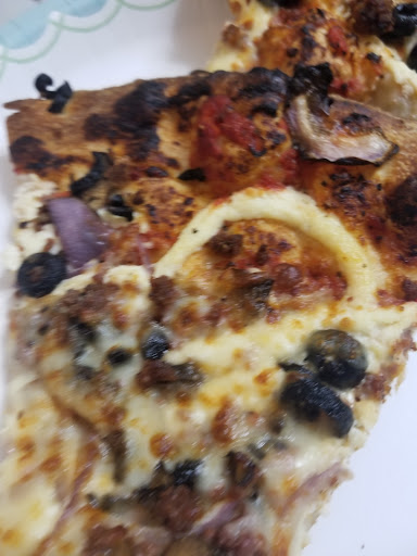 Read more4 stars because their people are super happy and friendly, and their gluten free pizza is crispy and amazingly good. (Would love to try a large size gluten free instead of just the small). This is the only place I go for GF pizza! Negative a star because no matter how many toppings I order online, bite quad or pickup, there's always something missing and I'm too embarrassed to complain that they held me back from true gluteny. It's unlimited toppings lately but I notice more missing meat and cheese options than missing veggies on my orders. If there is a unspoken limit, it would be nice to know before I make a fool of myself wanting extra bacon. The baked hot wings are GF, but none of the salad croutons or pita chips are. Or the cookies. Hope to see those options...