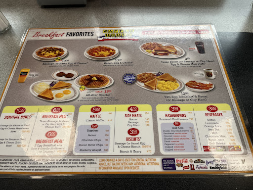 Read moreI absolutely love Waffle House, But I will NEVER visit this Waffle House again. I usually visit twice a week. It is so convenient for me I'm surprised that I'm not there every single day. I always get the same thing which is Bacon, Egg and Cheese on white toast with 2 extra slices of Bacon to go AND NEVER GET CHARGED THE SAME PRICE. Really I'm not Joking! Anywhere from $6.03 to $7.44. Last week the manager of the store got involved because I told the waitress that she was over charging me. The manager then added it up and said it was $6.50 not $7.44. Today the SAME WAITRESS charged me $7.44 again and when I reminded her about last week she said "I have never waited on you and I don't over charge my customers." The manager this time around which was a different one just wanted to know if I wanted it or not. I have had other dealings with this particular Waffle House in the past TEN YEARS that I've been a customer that Corporate had to get involved with, which is said to say that the waitress got fired. ENOUGH IS ENOUGH! I'm sure that another Waffle House would be glad to have my business. I will not give up on on Waffle House I will just have to find next...