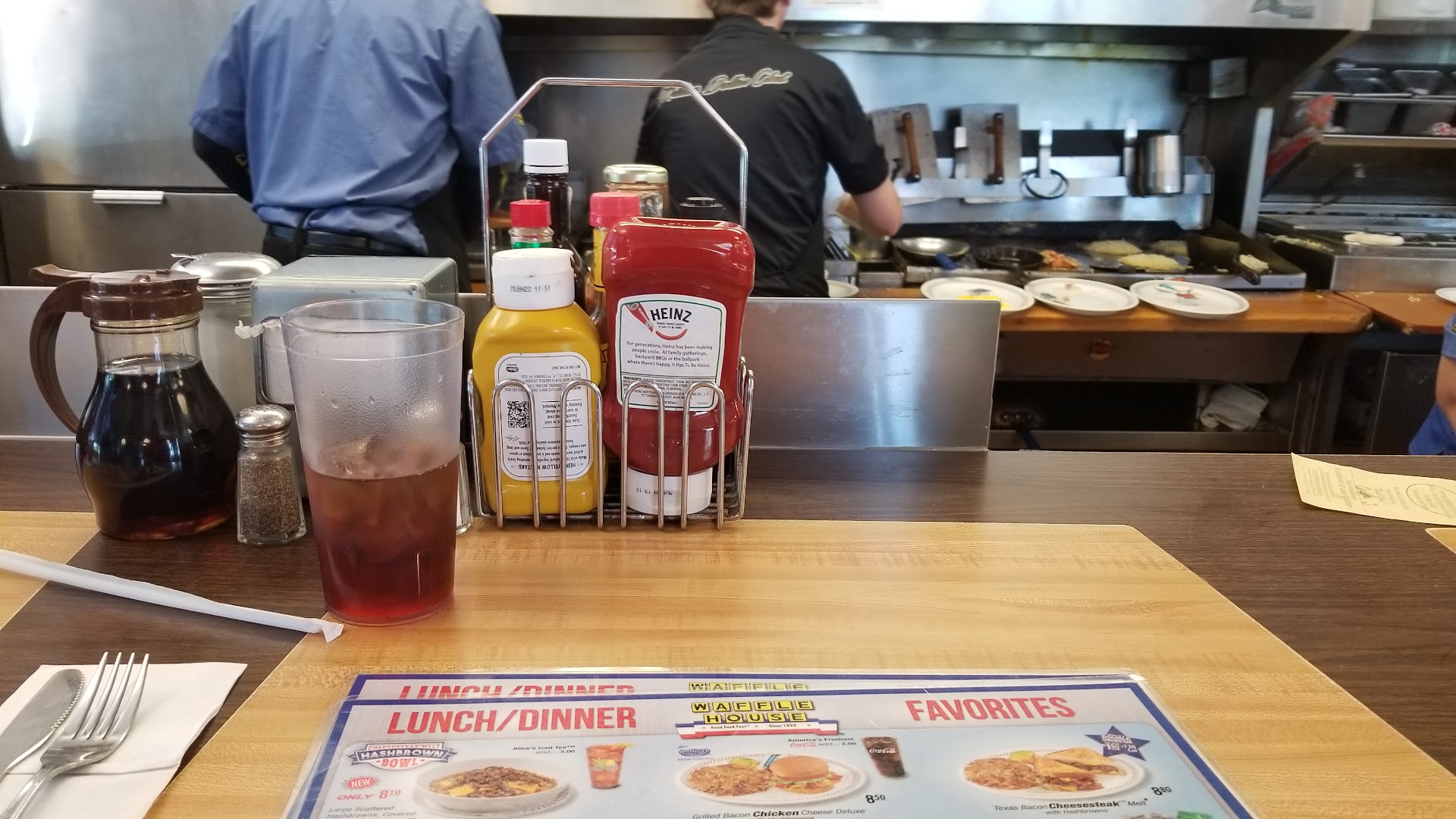 Read moreNot a bad place after going out drinking just to get something in your stomach, but… I will say they really need to get a food and safety inspection done by corporate. Messy floor where there was a whole puddle not cleaned up where someone could get seriously injured if they were to slip, even if there was one wet floor sign (this was right as you walk in!). Messy floor in the cooking area as well and it didn’t look like they cleaned the spot for grits and eggs for a few hours. Employees were wearing gloves, but not washing their hands and replacing them after wiping off sweat, rubbing on their clothes, and touching other foods. I noticed a worker was making toast and happened to wipe off sweat off of his face and used the SAME hand to pick up fresh toast for a to-go order. He also gave my friend dirty looks and shook his head at him a lot and I wasn’t comfortable with that. Only pro: Diamond was a great waitress and a sweetheart and the food was alright. But needless to say, I recommend going to another 24 hour breakfast place or to another Waffle House in the area and to consider...
