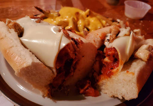 Read moreNeat community bar. Big outdoor area hidden in the back. I assume it is dog friendly. (They have a stuffed white cat inside). Beer was cold and cheap. The food wasn't great. I was pretty disappointed by the Chicken Cheesesteak. Didn't even melt the cheese, and it was very salty. Maybe I made a poor menu choice. I would certainly go back and try something else. The...