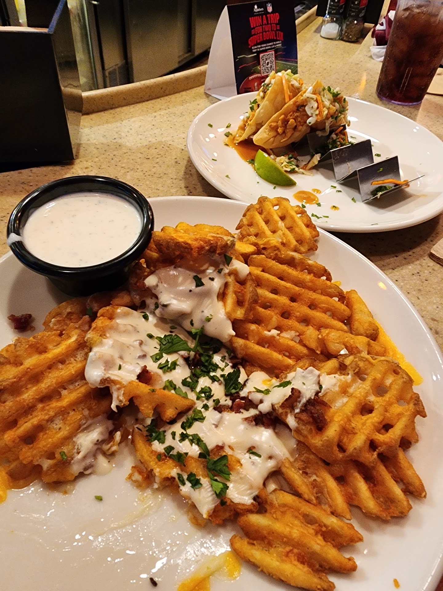 Read moreSo I went with my friend girl on June 16 for lunch. The service was awful especially for it being in the afternoon around 2pm and literally only a few customers in the restaurant. I don’t understand there was only one waitress doing the job of a hostess and the job of a waitress. It’s unfortunate we wasn’t offered any waters while we look over the menus we waited over 10 minutes for someone to come back and see if we ready for to order I put in some order for drinks from the bar we waited over 15 minutes for a two alcoholic beverages mind you not this is not during a rush maybe it was 3 others table being served. Me and my friend girl received our drinks they were made wrong and just weak however we still tried to make the best of while sipping on our weak alcoholic beverages we didn’t get to place any order for the food until maybe 20-30 mins after waiting a long time for two drinks. We didn’t get any water , no napkins , no straws no utensils and it’s because we were dining in I go to chills and literally don’t have to experience this. The appetizers we’re practically cold and not even fresh which is sad because we waited so long to even put in a order for food the spinach dip was not hot and the mozzarella sticks were also not hot ! Why am I being served cold mozzarella sticks , our buffalo wings were overcook and they were so hard I’m not sure if it was freezer burnt but this experience was trash . Next our two entrees were made wrong and the overall presentation and quality of the food was disappointing and awful I will not be returning to apple bees it’s ridiculous I spent $83.00 when I could’ve had an excellent at chills for a cheaper price I will be reaching out to my bank...