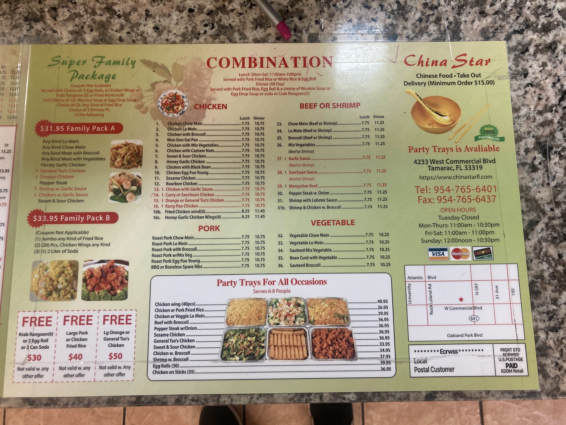 China Star Restaurant is a hidden gem for takeout. If you're in Lauderhill, give their Family Pack A a try—you won't be...