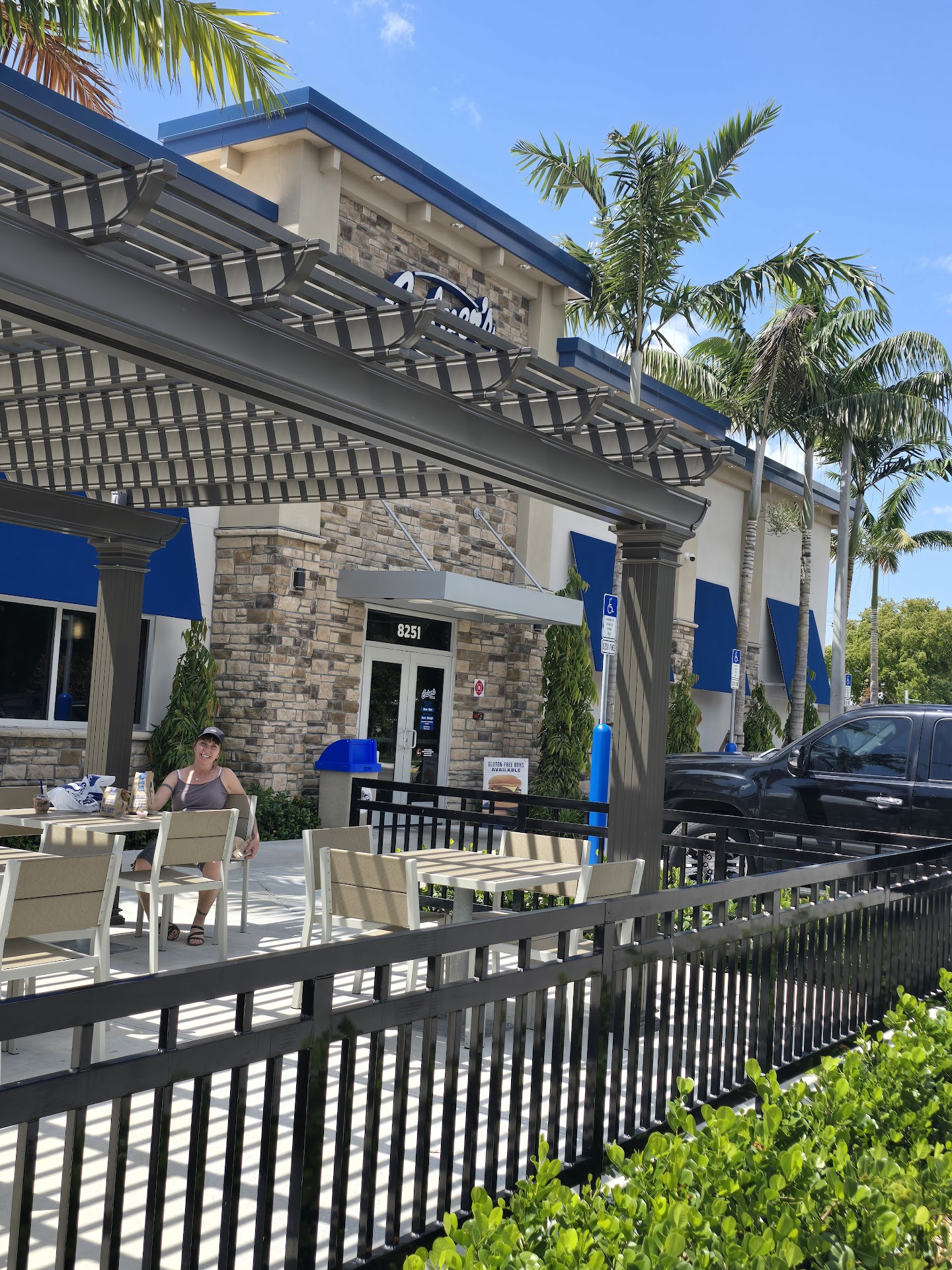 Meanwhile, my son spotted a Culver’s nearby and walked over to grab me a salad — which felt like striking gold at that point. I finished fueling up and made my way over to Culver’s, where the experience was a complete 180 from the 7-Eleven stop. The staff was warm and welcoming (something I’ve found to be pretty consistent at Culver’s no matter where you are), the bathroom was clean and working (hallelujah), and we even got to enjoy our meal outside on a lovely patio surrounded by palm trees.