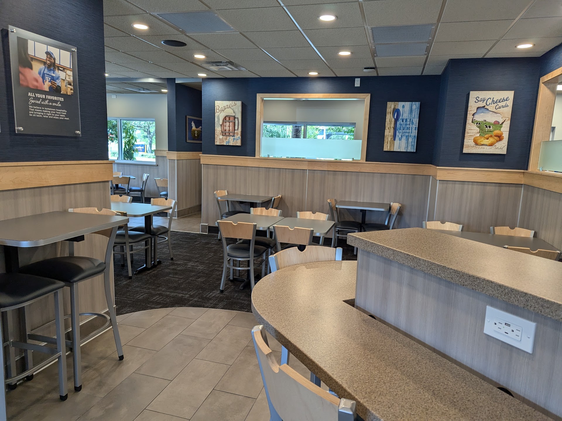 We went and tried Culver’s for the first time today. It’s clean inside as it should be bc it is a new location that just opened. I’ve never had Culver’s food before so I am not overly familiar with this specific chain. For starters I won’t give a low rating based on service bc again, new location and they’re trying to get their rhythm. The poor employees all look like they were out of sync. I don’t understand the thought process for serving the food using number placards and trying to find the table for that order. It took 40 min for 3 of us to get our food, which was simply a sandwich meal and no desserts. To me that defeats the purpose of fast food as this is supposed to be a fast food chain, not a full service restaurant. I was kinda surprised bc I know they’re busy but it wasn’t busting out the door or half the dining area was full busy. The few employees we encountered were absolutely sweet tho. I didn’t see name tags so I couldn’t tell you who I spoke with but they were really nice and professional. Now onto the food. I took off a star bc I figured since my husband ordered a burger, I’d try his and I got excited by the Rueben melt and onion rings. When we finally got our order I noticed my Reuben had a very nice cheese pull and I was thrilled!! Then I took a bite. Oh dear god, all I tasted was a mouthful of salt, brine and grease. I tried another bite thinking I hit a spot with more salt than usual but nope. It was a BAD choice on the Reuben melt. It was inedible. I wanted to like it. I really did, but I couldn’t. I actually enjoyed the onions rings! Thankfully a young woman came over and asked if everything was ok and I explained to her the issue she was super sweet and offered me something else and I just asked for a single culver deluxe and she brought me a DOUBLE! She really didn’t have to but she wanted my experience to be a positive one and that alone cemented me into definitely coming back again as well as the fact that was truly one of the most amazing burgers I’ve ever had! Beautifully seasoned and cooked exceptionally well. The buns were perfect. Oh, and I stole a French fry from hubbys plate and I gotta say, delicious!!! I actually liked them more than the onion rings to be honest. I’m hoping this place stays around for many more years and the quality of their burgers and fries stays as amazing as I had today!...