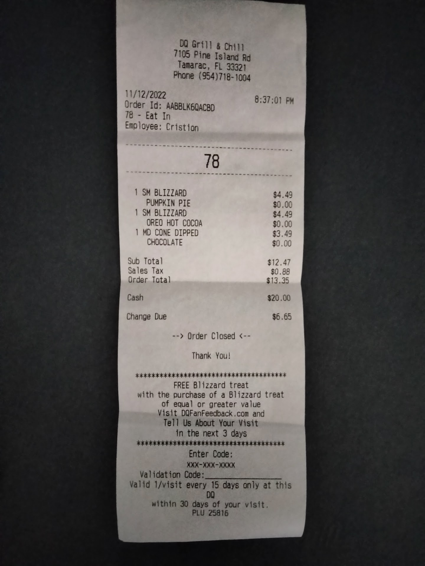 Read moreThis is our local DQ.We pulled up to the window to place our order. Which went ok except listening to loud laughter coming from the background. There was a car in front of us so we knew we had a short wait.Well,the car in front of us obviously knew the girls servicing the window. So we waited and then waited some more.Only to witness them laughing and exchanging banter with the people in the car.Tbey finally left didn't purchase anything only to keep us waiting for no reason.We finally got to the window to get our order.Paid peed around and checked our order. No surprise. It was missing one Blizzard.Ordered 3 received 2 in the bag.Sent my nephew who is 23 back in with the receipt only for them to say they gave us our order of 3.Well by this time I and my sister were quite pissed.She went back in with the bag with 2 of to then find out they made one of the orders wrong.Oh by the way way we paid for 3 Blizzards OK enough said.I guess our local DQ will have either need to find better help or Carvel will become our local ice cream choice.Hope this helps in making your restaurant and ice cream parlor a place we want...