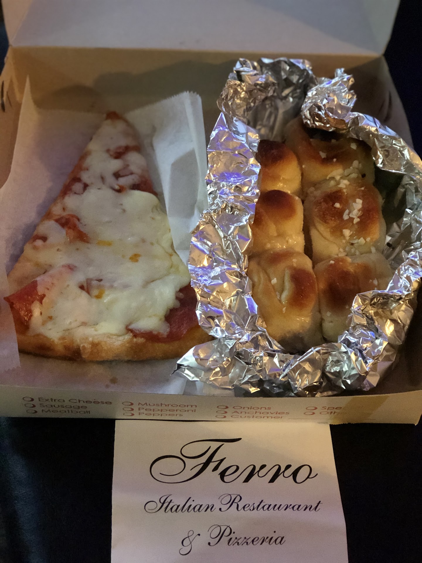 Ferro Pizza should be called "Delicious Ferro Food & Pizza" my family went there for my granddaughter's birthday and it was such a good experience because the food was absolutely delicious. We had their delicious garlic rolls, and they're fried calamari, and then we all have different dishes. First of all the service was fantastic. Before we could even ask for more water or could you get me this and that it was already sent to the table. My food was exceptional. I am Italian American I'm very fussy about going to eat Italian food. I ordered the seafood dish with Linguini and I cannot even tell you how this masterpiece came out and how delicious it was. First of all they give such amazing amount of food and the seafood was delicious the pasta was delicious and cooked perfect and I was so pleased I couldn't wait to tell the owner. I looked at all the dishes that came out for the family, and each one had such an amazing amount of food and was so put in the dishes so well and looks so appetizing, and everyone was satisfied with the food. Sometimes you go to a restaurant and when the dish comes out it looks like they shared it with somebody else because the prices are high and the amount in the dishes is very small. That does not happen in Ferro's. The seafood in my dish was so well cooked, not overcooked and delicious with the amount of seasoning.... just perfectly done. My daughter had the eggplant parmesan it was delicious and also an amazing amount done so perfectly and looked so delicious when it came out we all said "oh wow look at that" we have gone there for pizza and their Pizza is really good, and does not make you hesitate to call them for delivery or to go there and sit down and enjoy a delicious pizza. Now you see why I want to call it delicious because everything in there is really good. I am very "Picky," and cannot wait to go back again!Thank You Ferros for making my granddaughter's birthday dinner something special. I come from Miami Lakes area and don't mind doing the driving to come back there at all. Hope to see you really soon Tony... if I close my eyes and just eat there and feels like I'm eating in Brooklyn New York where I come from originally....