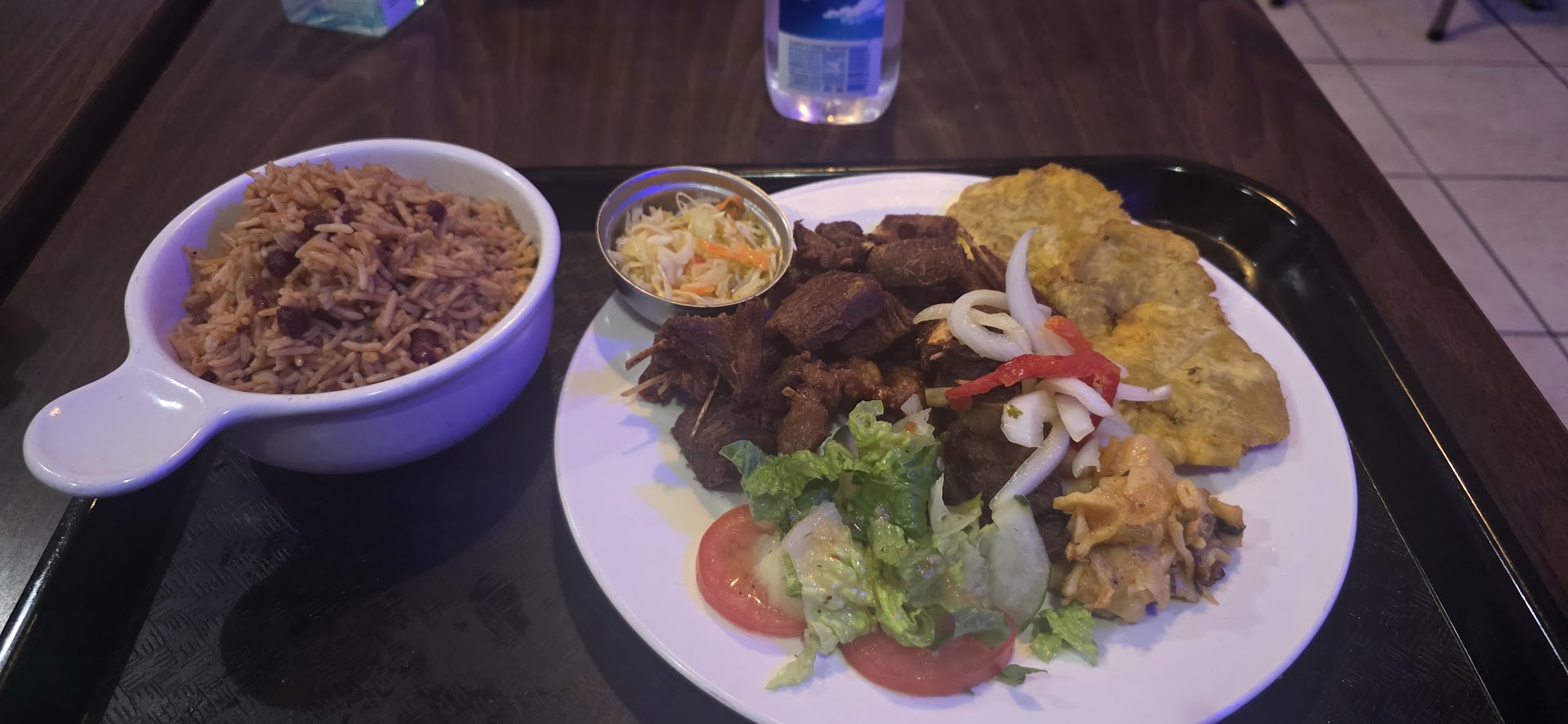 I ordered the legume white rice sauce pwa plate and the tassot with diri jon jon, and let me tell youâit was phenomenal. The flavors were amazing , and everything was cooked to perfection. The restaurantâs playlist set the perfect mood, good music and playing at just the right volume not loud. Plus, the restaurant was spotlessâtables floors, were clean.
