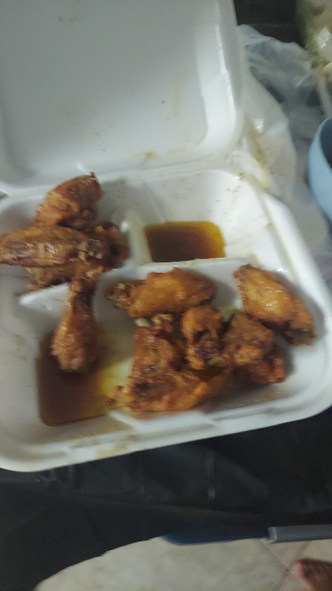 Upon entering, you'll be greeted by a friendly cashier. The menu is part of the counter so you can't miss it and contains a wide variety of items. They have lunch specials which include things like burgers, chicken sandwiches and wings. I opted for the chicken sandwich but they ran out so I ended up getting ten barbeque wings with curly fries. Drinks include a decent selection of bottled items in the cooler as well as fountain sodas. The lunch special was about $12, so not exactly a special.