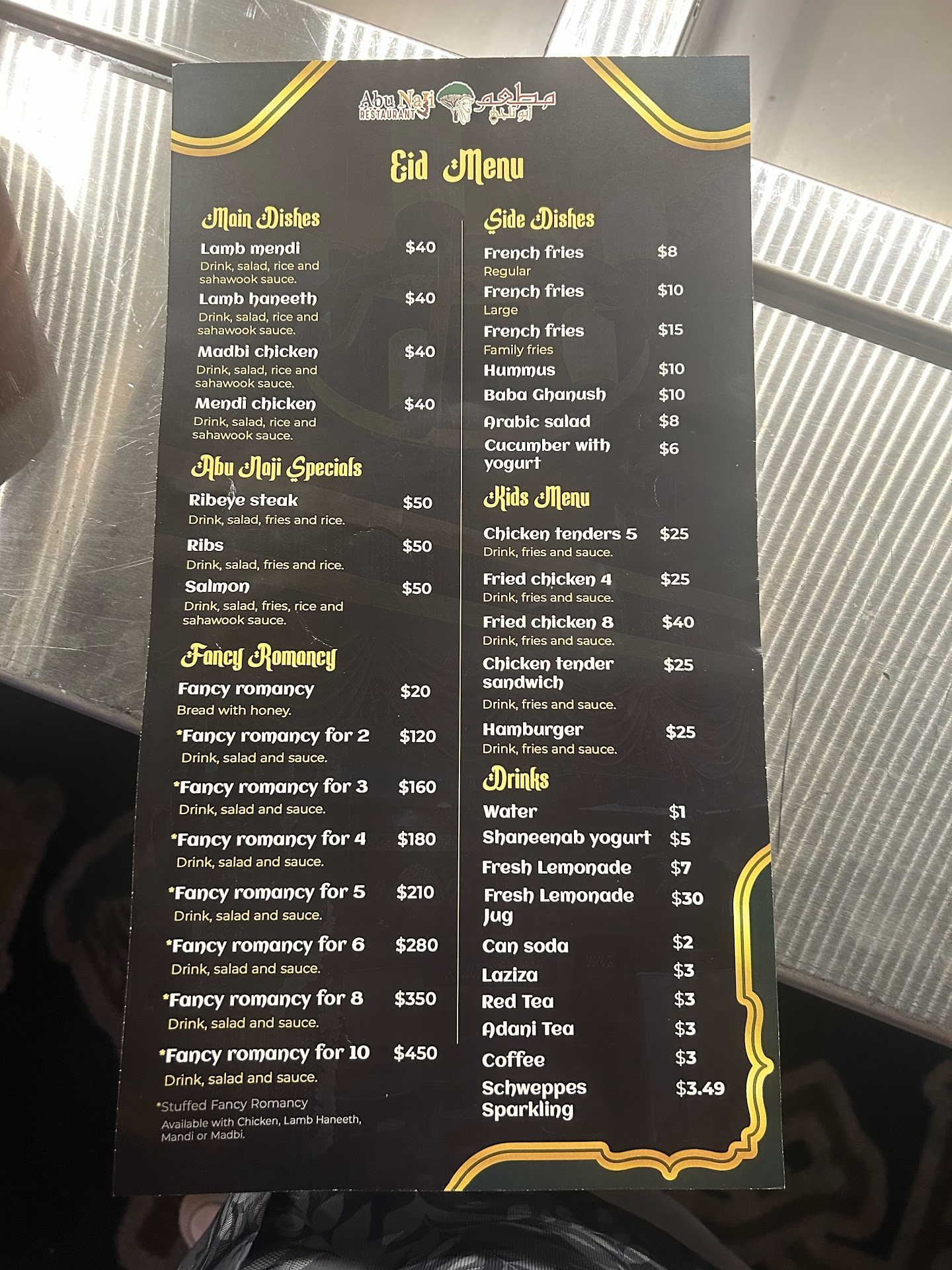 Overall, I would not recommend Abu Naji Restaurant on Eid or other special occasions unless they make their price changes clear ahead of time and improve the consistency and quality of their food. There are other Yemeni and Middle Eastern restaurants in the area that offer better food, more reasonable prices, and more reliable service. This visit left us disappointed, especially considering how much we...