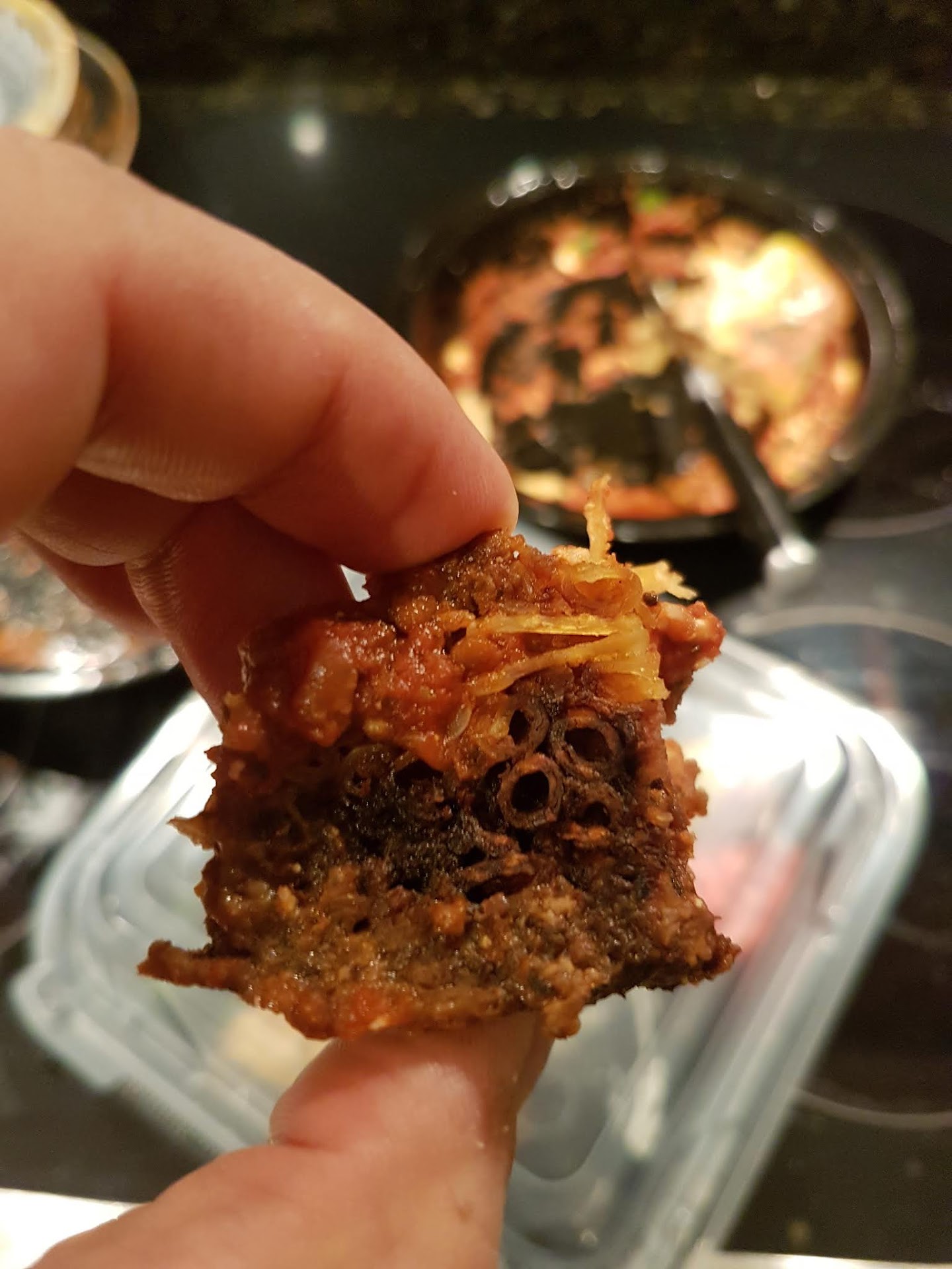 The boxes weren't put in a bag designed to keep them upright, and there's no way those boxes could have been put side-by-side in the bag used. The driver could have tried better to keep them from tipping, and I'm taking that up with Uber. Because the food had tipped, it was spilling out into the bag. Acropolis can and should do better packing to-go orders. As mentioned a side order of pita was missing. As shown in the pictures, the Pastitsio was burned to a crisp all the way around.