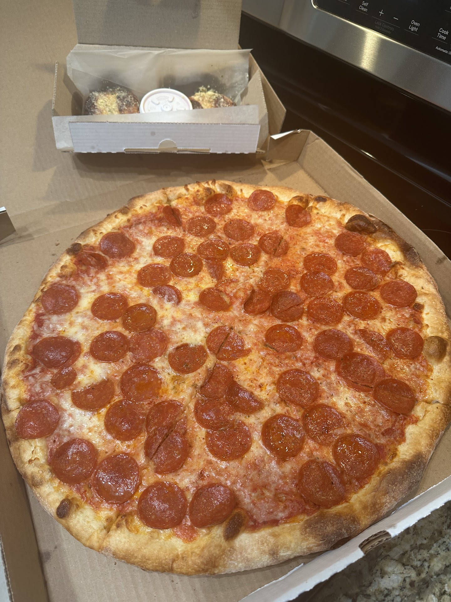 I’ve eaten here a few times over the years when I visit the area. The pizza is delicious and stands up to NY style. Enjoyed our pie straight out of the oven, nicely pimpled crust, crisp around the edges and a good chew.