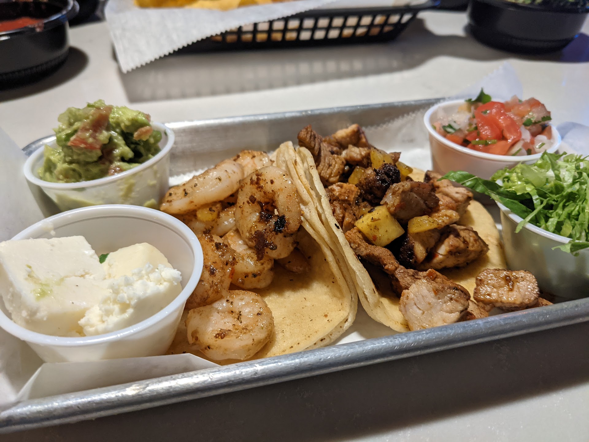 Four stars because while some things were fantastic (pico and shrimp were on point!) Others were lackluster (queso was not good, pork was pretty fatty). But for the price I'm not sure I'd complain, it is what it is. If you want more, go somewhere else and spend more.