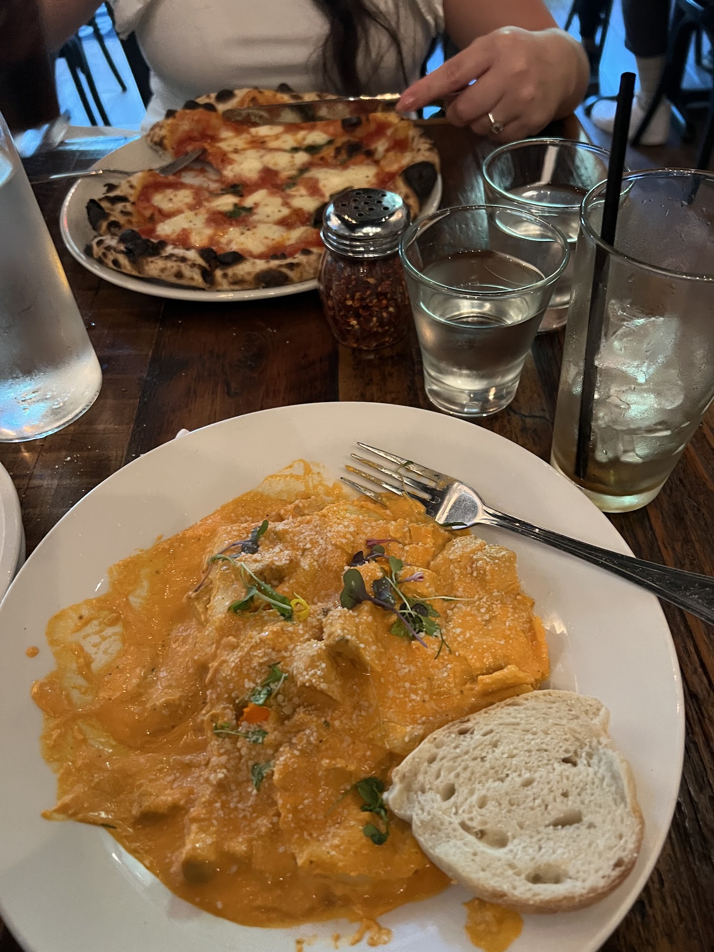 Pizza was as it always had been, good! Raviolis were dry and crispy in the corners, that pasta should have never left the kitchen.