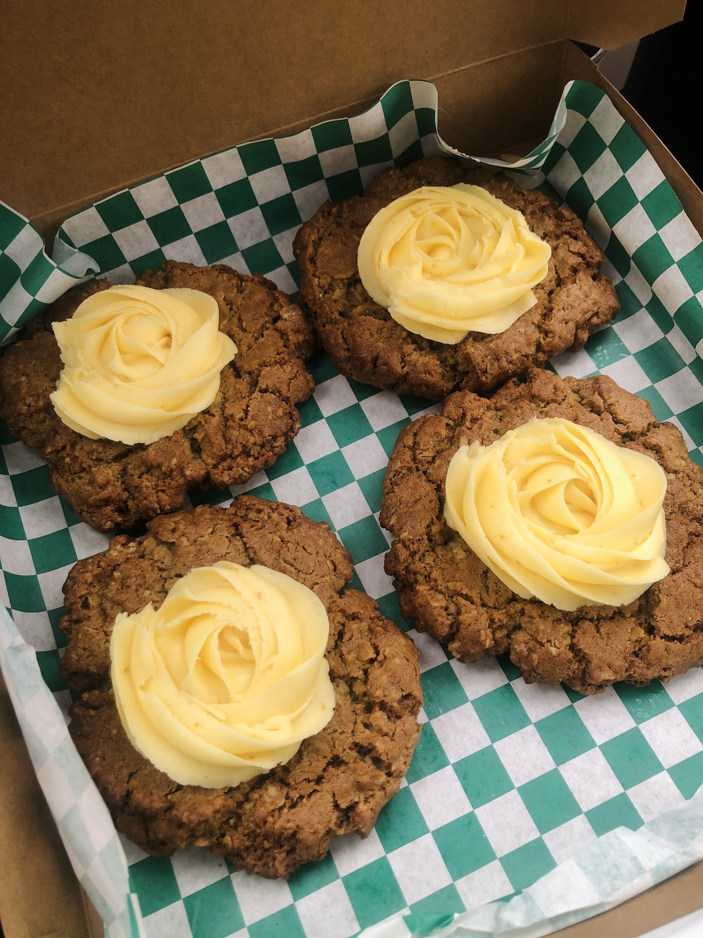 I grew up eating the Oatmeal orange blossom cookies as a kid visiting side stage deli/cafe. This was when they were supplied by Chris’ bakery. This bakery has been sold and re named multiple times, but the recipe has somehow remained the exact same. Just like my brothers and I remember . The staff at Beanie and Bellies are incredibly friendly, and they are always so sweet to talk to. The cookies are crispy on the edges and remarkably soft and warm in the middle. The orange frosting is made with love and you can taste it in every bite. If you’re not too big on sweets, I recommend getting half the icing. It’s amazing! Will continue to come back again and again and again and again....