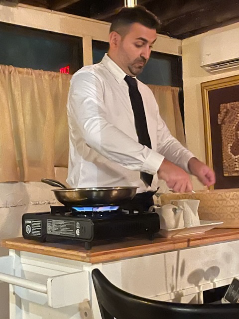 Both entrĂ©es were prepared tableside. The owner, who was also cooking, smelled like he had been smoking and drinking while preparing the food. Ohâand they brought out a âfirst biteâ to âwake up our taste budsâ but wouldnât tell us what it was, despite repeated questions. When we insisted, they responded with, âOh, I donât speak English.â It looked like tan mush, was watery, and tasted terrible.