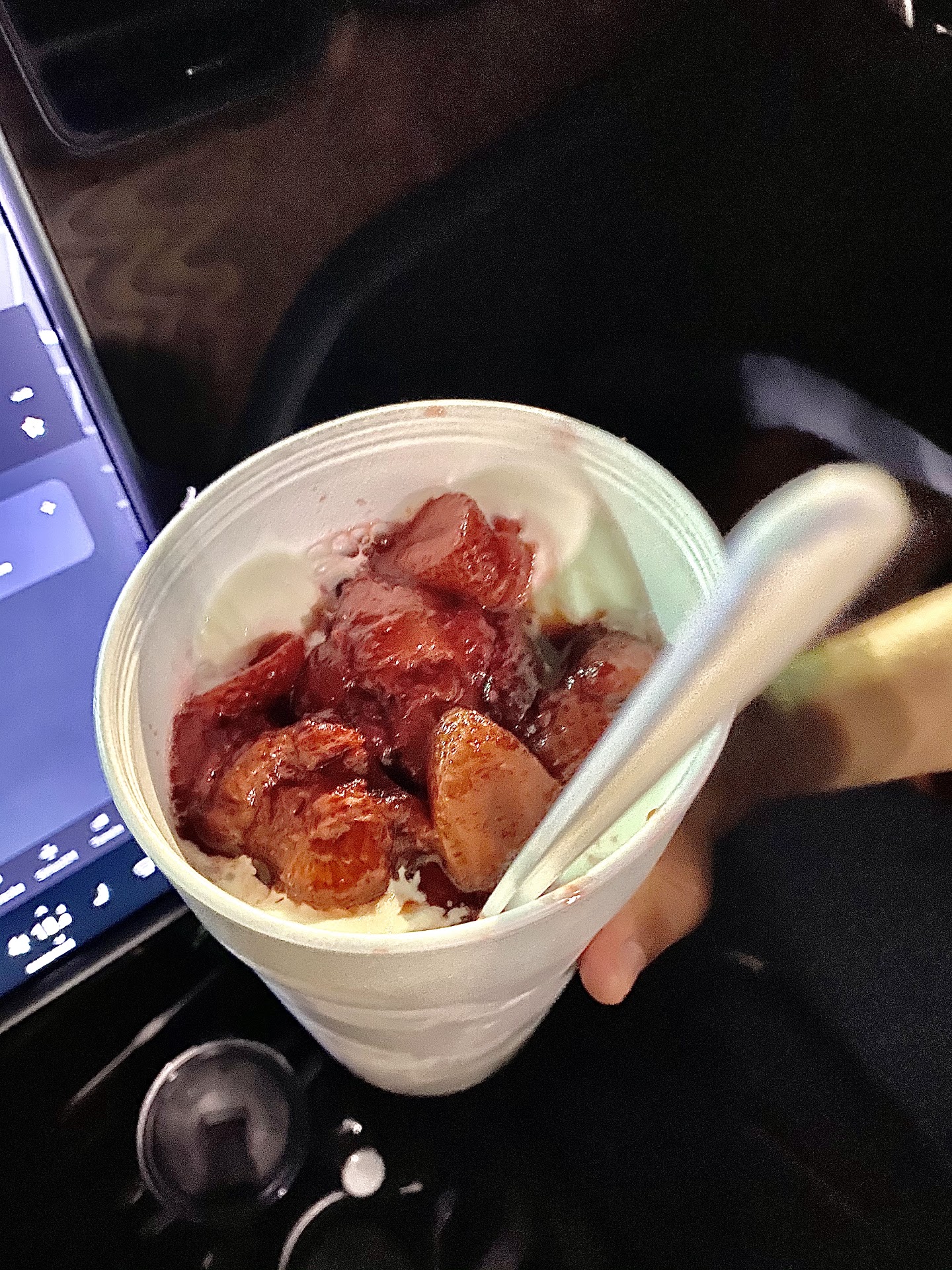 Vanilla ice cream with strawberry sauce: their sauce is not super sweet so it makes it a very enjoyable simple creation 5/5
