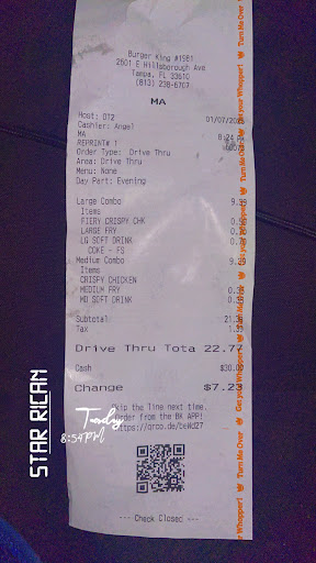 Read moreIF I COULD RATE THIS BURGER KING A ZERO I MOST DEFINITELY WOULD!!! I went there one night and the drive thru was sooooooooo backed up with both lanes full,so i got out and went in and there were only 2 people ahead of me and i only ordered 3 icees and I stood there for 17 min's before I finally asked the manager that was texting in her phone while she was supposed to have been getting order's out and handling peoples food,and she stated oh is that all you ordered and I said yes then she went to get them and then she came back up and said Oh we have to change the syrup and I stated o.k. and I stood there for another 12 min's and I said excuse me can you please just give me my money back and she gave me the most NASTY LOOK,then she went over and made the icees and gave them to me and said do you need a cup holder and i said no and left. THIS PLACE HAS THE WORST SERVICE AND THERE MANAGERS NEED MORE CUSTOMER SERVICE TRAINING!!! BECAUSE STANDING IN LINE FOR ALMOST 30 MIN'S FOR 3 ICEES IS RIDICULOUS AND I WAS WATCHING THE TIME BECAUSE WE WERE LATE TO GO TO THE DRIVE IN MOVIE ACROSS THE STREET FROM THERE....